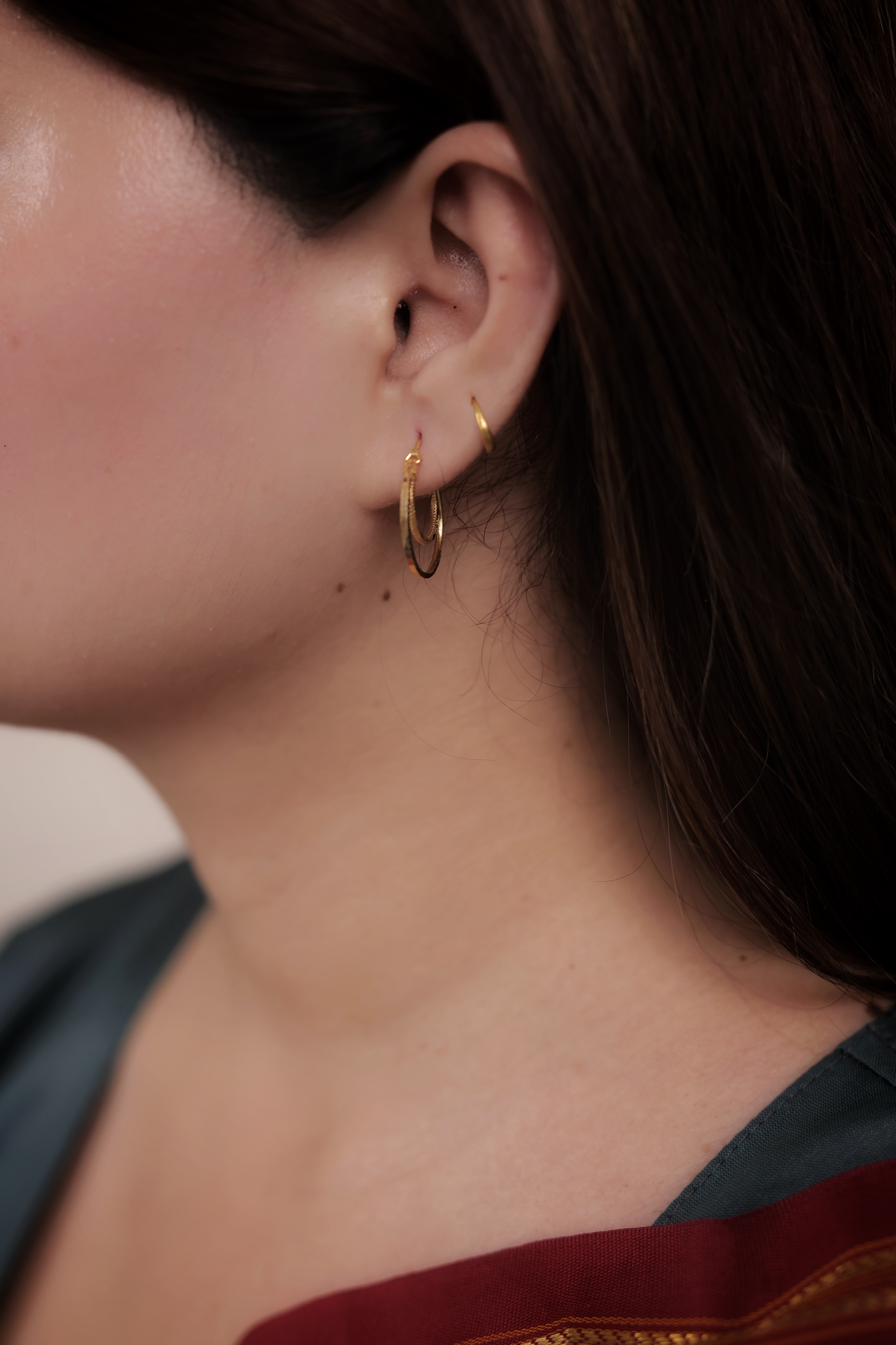 Delicate Double Layered Gold-Plated Bali Hoops | Small Nested/Stacked Look Earrings | Dimensional Daily Wear