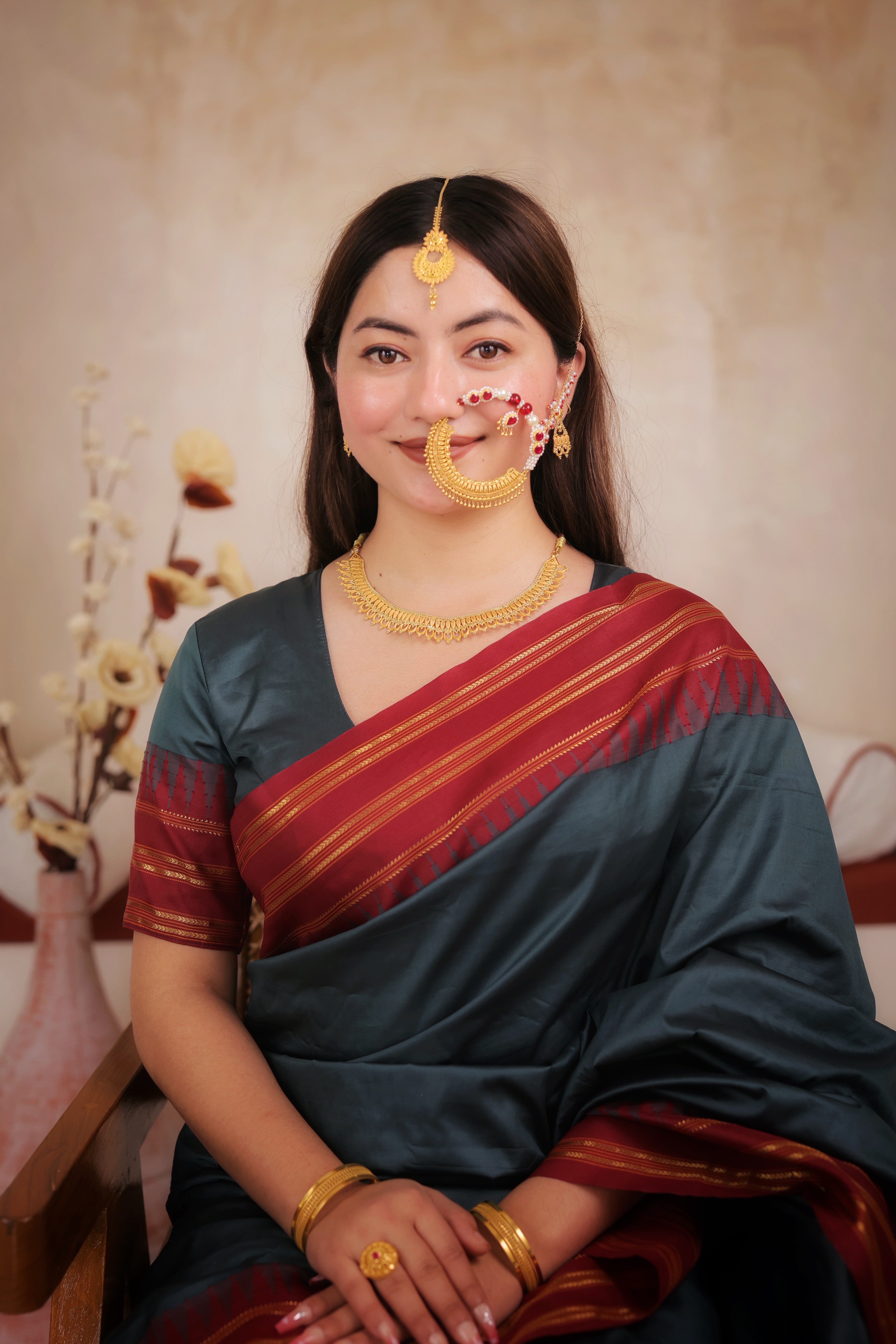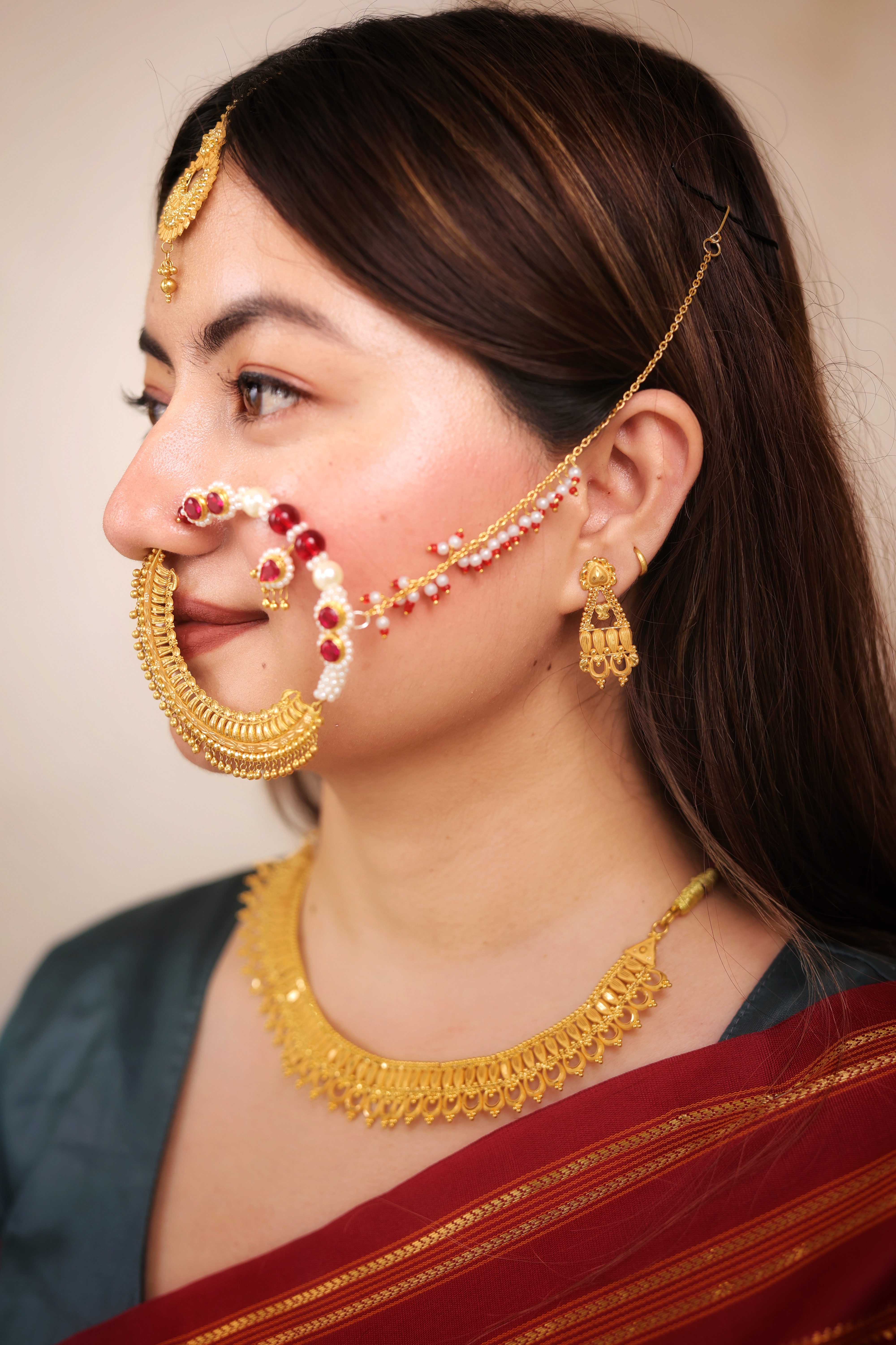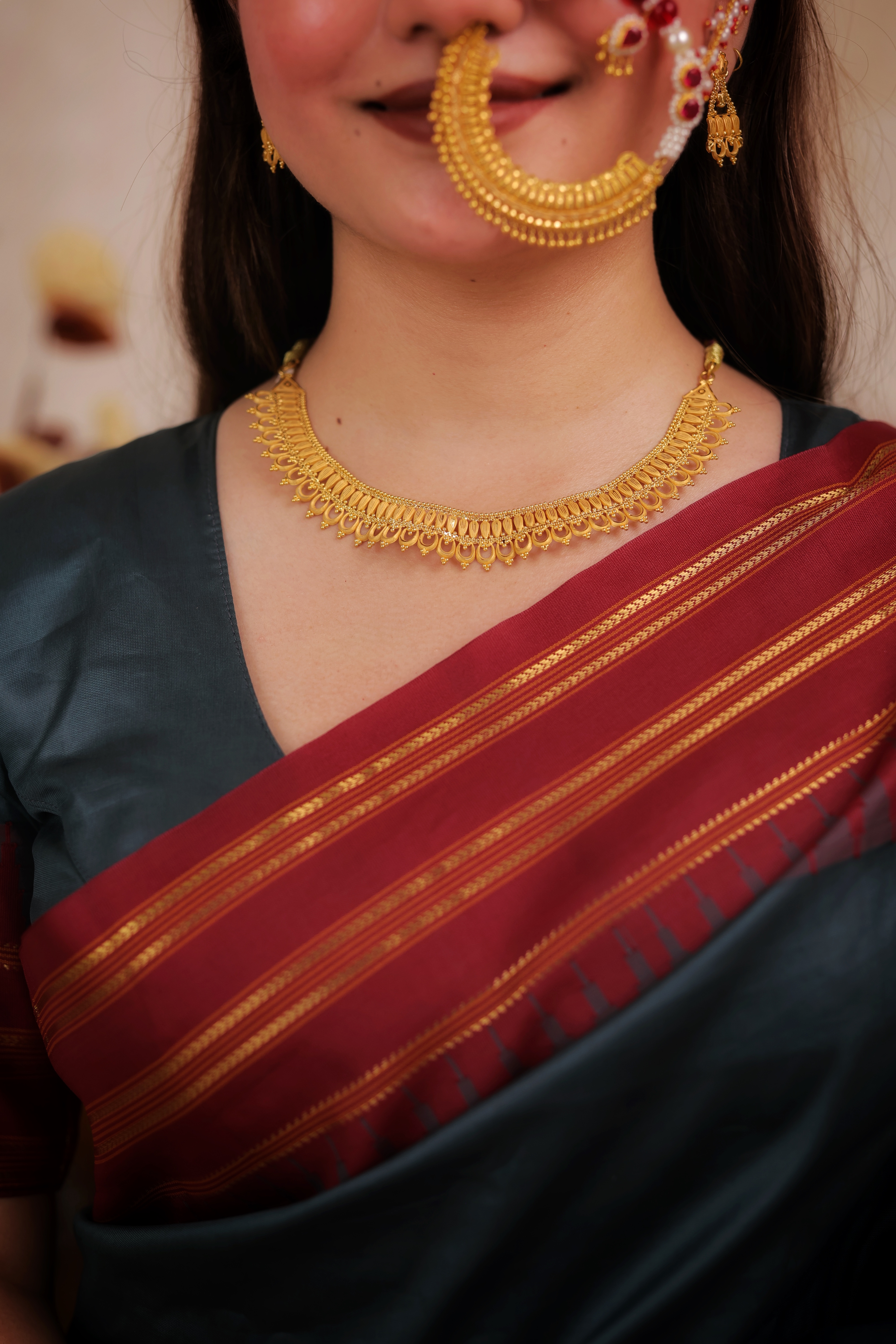 This is an elegant traditional jewelry set, suitable for semi-formal to ceremonial wear, crafted in rich 22-carat yellow gold (916 purity).