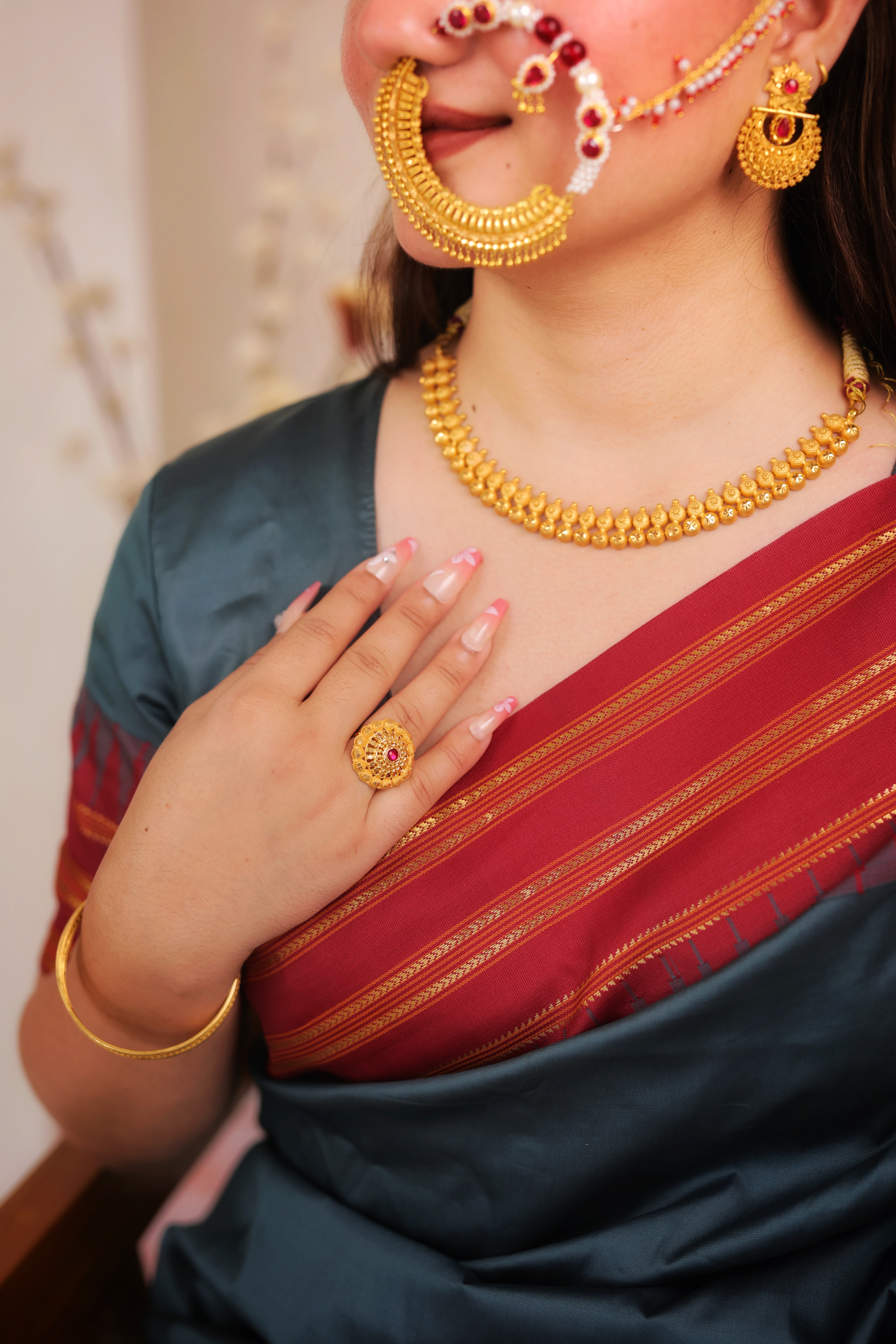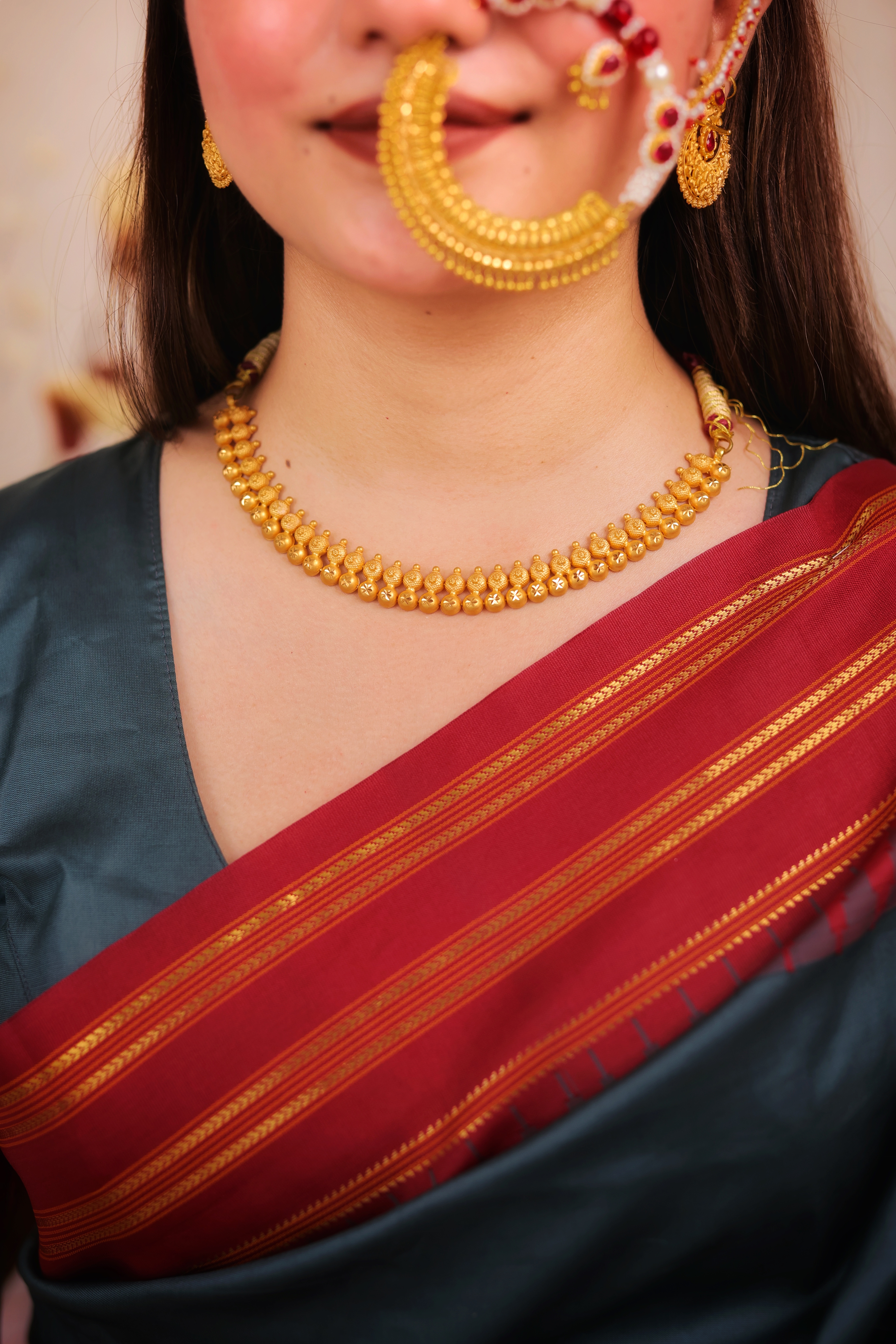 This is an elegant traditional jewelry set, suitable for semi-formal to ceremonial wear, crafted in rich 22-carat yellow gold (916 purity).