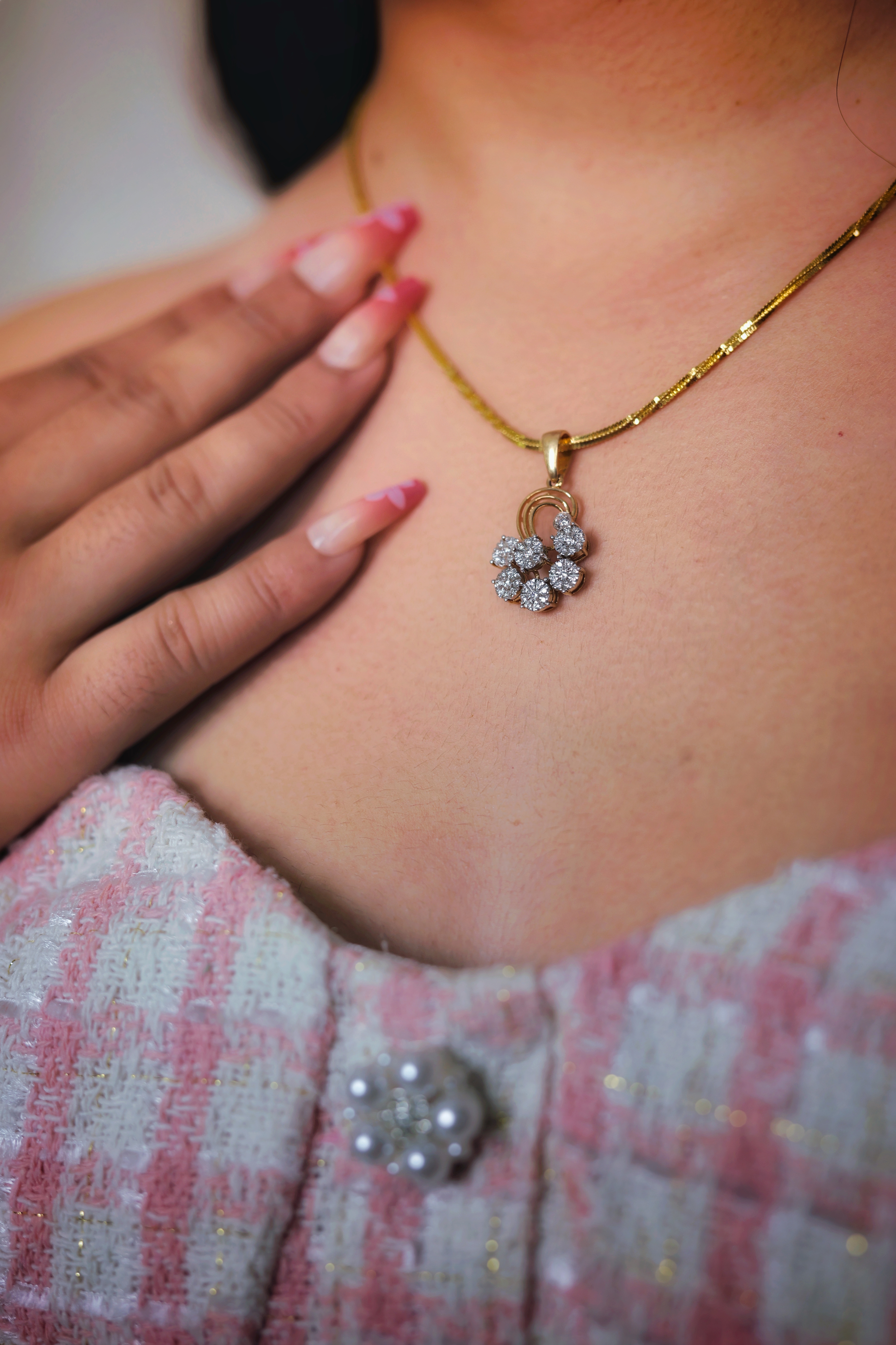 Sparkling Gold Diamond Flower Cluster Pendant