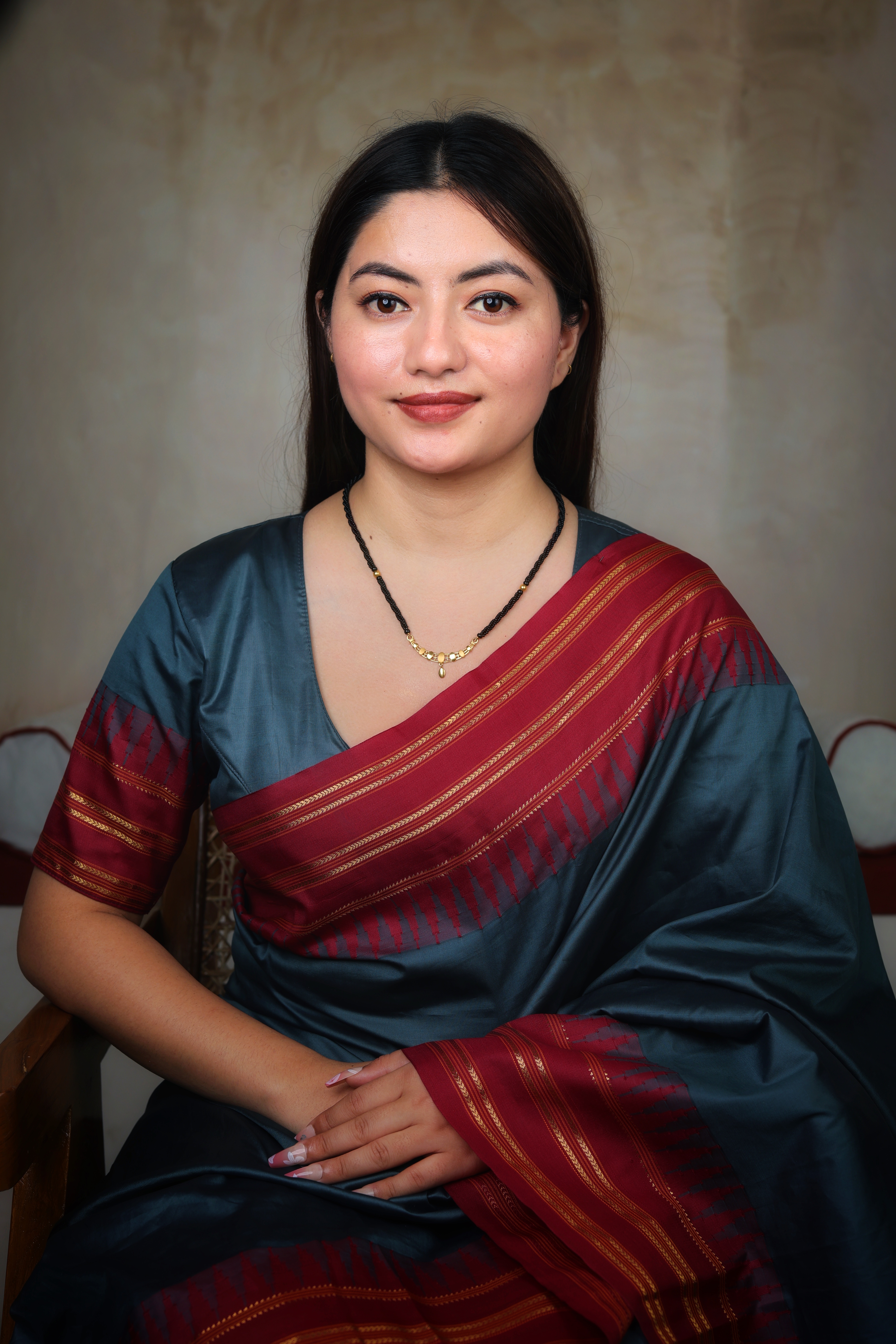 Key Features:Design: Short-length, minimalist Mangal Sutra featuring a sleek, curved gold pendant bar with a scalloped edge. Chain: Traditional double strand of black beads. Pendant Details: Light, open design with a delicate, continuous scalloped border and a single, central dangling gold drop. Metal Purity: 22 Carat Yellow Gold (916 purity). Usage: Ideal for modern daily wear, layering, or as a lightweight, contemporary piece of traditional jewelry.