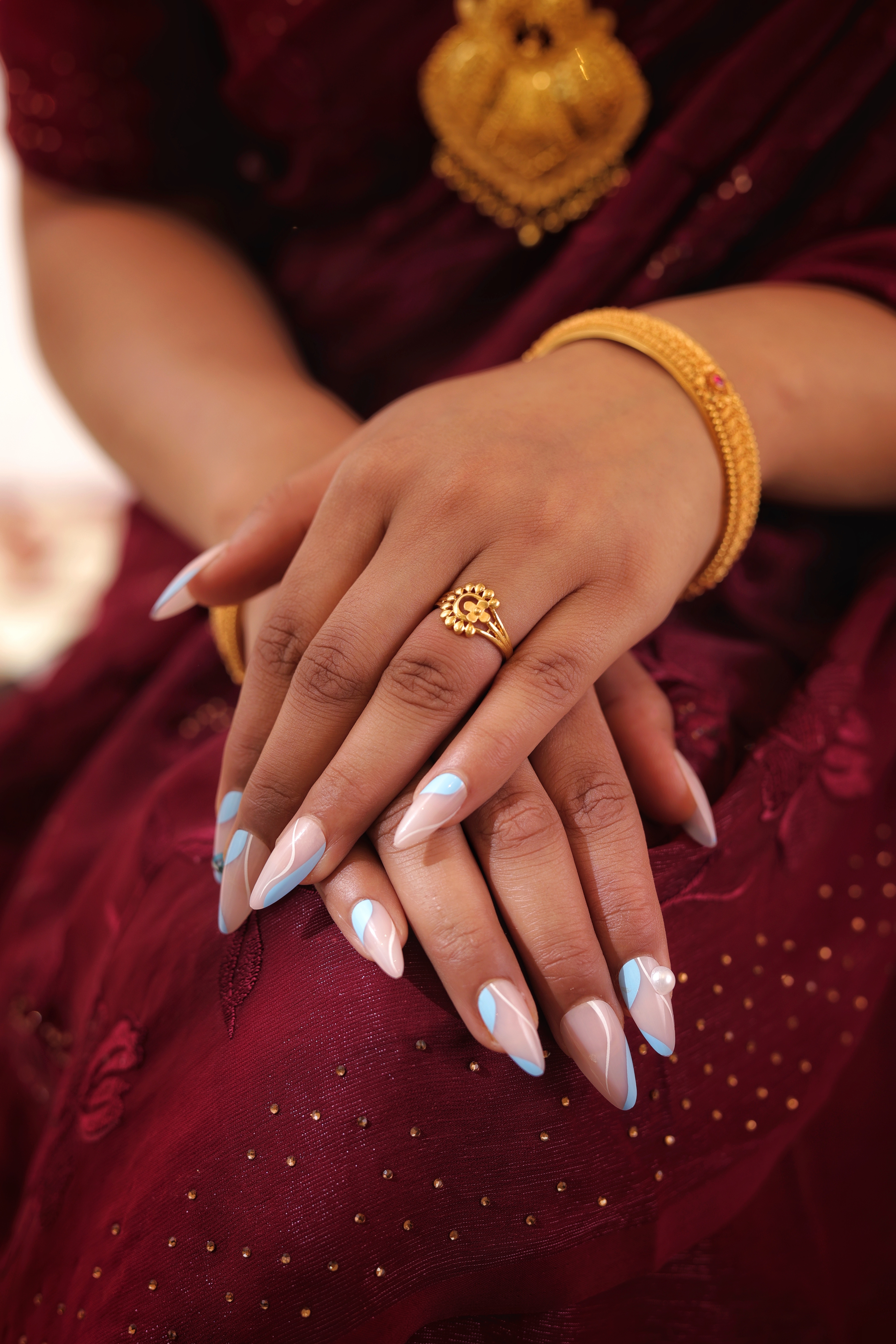This beautiful ladies ring showcases a bold, sunburst-inspired design with a mix of textures, achieved using the Casting method for a smooth, high-detail finish. It is crafted in rich 22-carat yellow gold (916 purity).