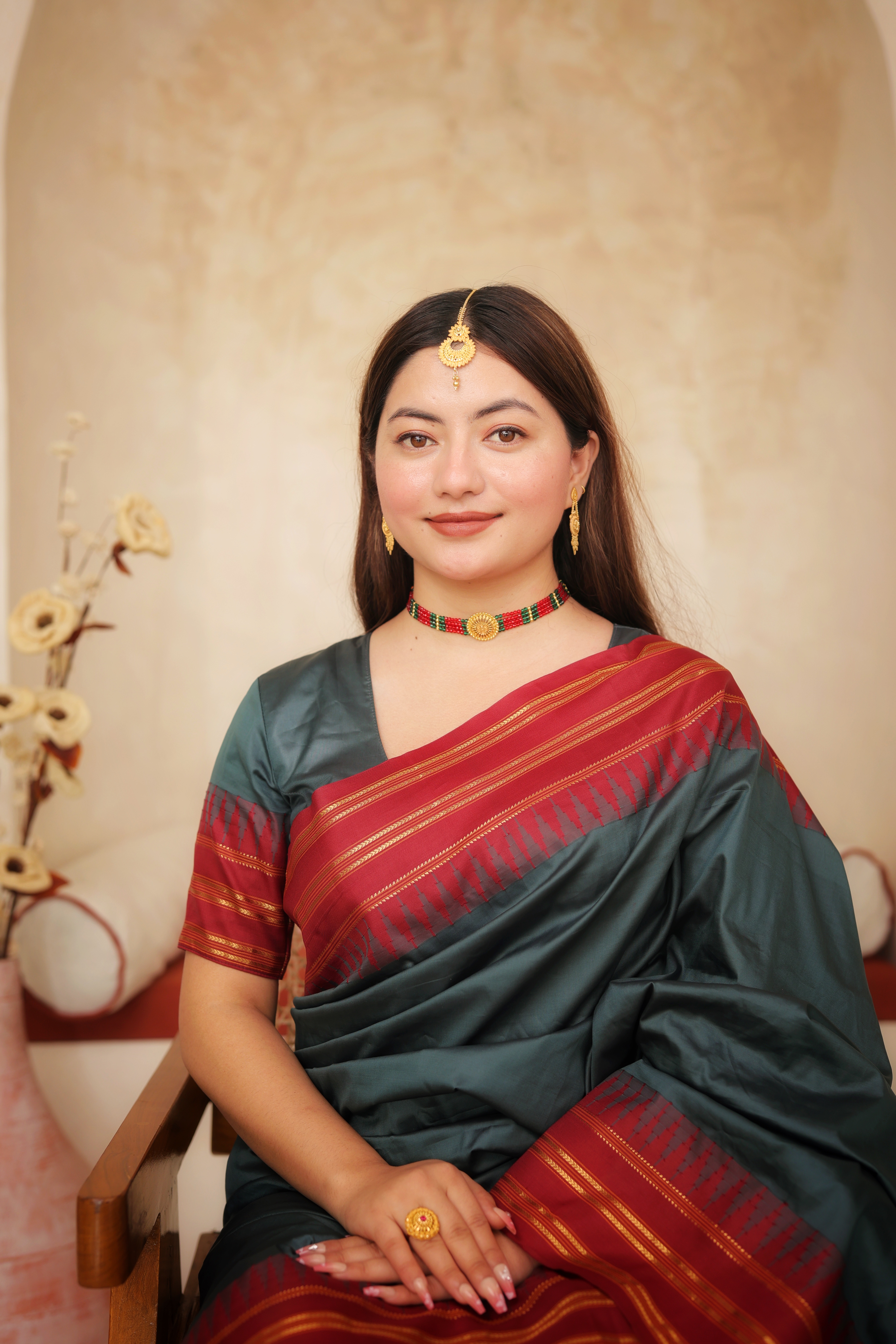 Elevate your ethnic charm with this Red–Green Multi-Strand Beaded Chokhar from Jaishree Jewellers — a perfect blend of tradition, craftsmanship, and elegance. Designed with four layers of premium red and green beads, the color combination signifies prosperity, celebration, and cultural richness.