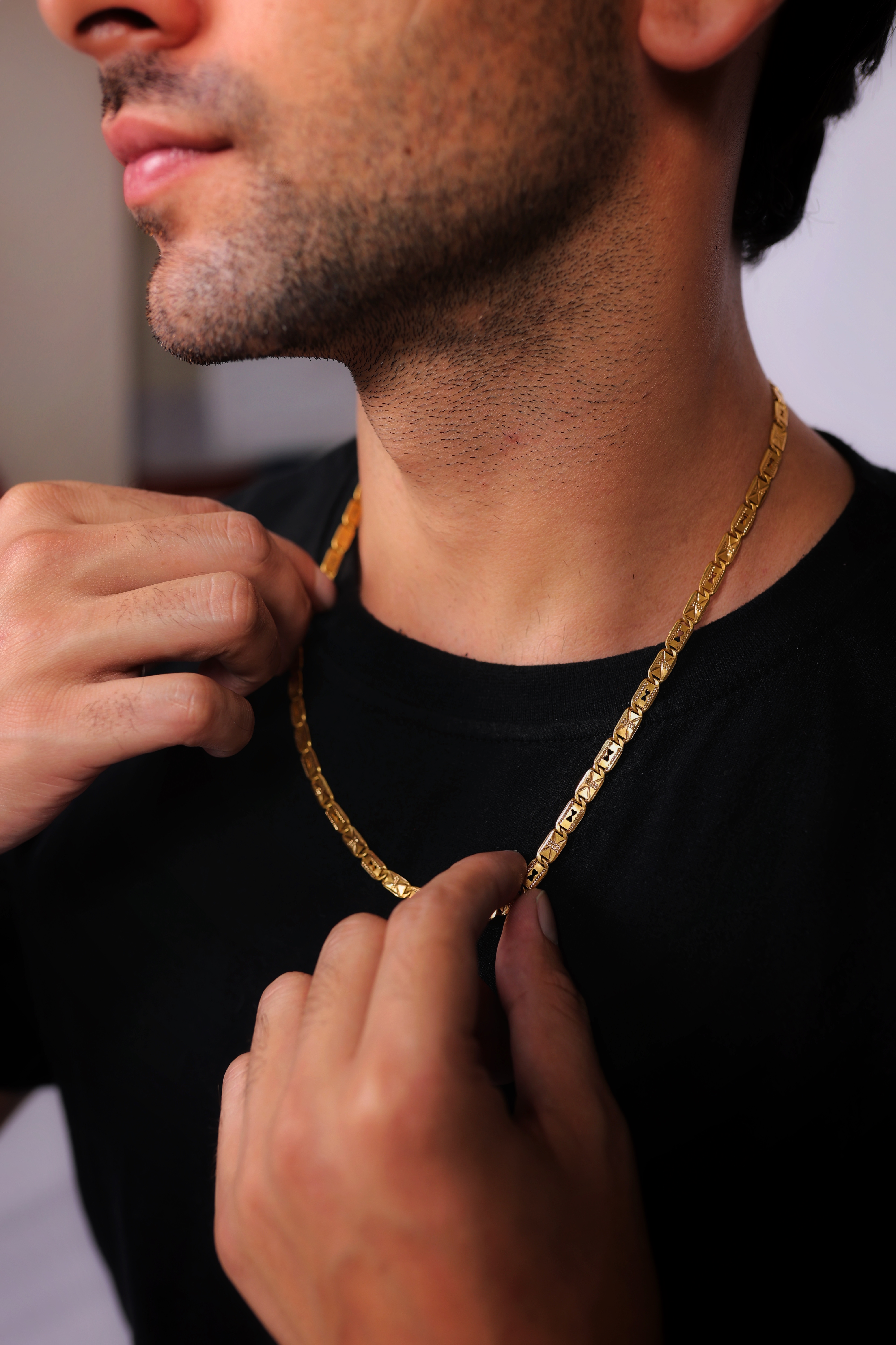 Made from pure 22K gold Box link design for a strong, masculine look Smooth polished finish with premium shine Comfortable and durable for daily wear Suitable for casual, office, and festive occasions Can be worn solo or with a pendant Ideal everyday gold chain for men