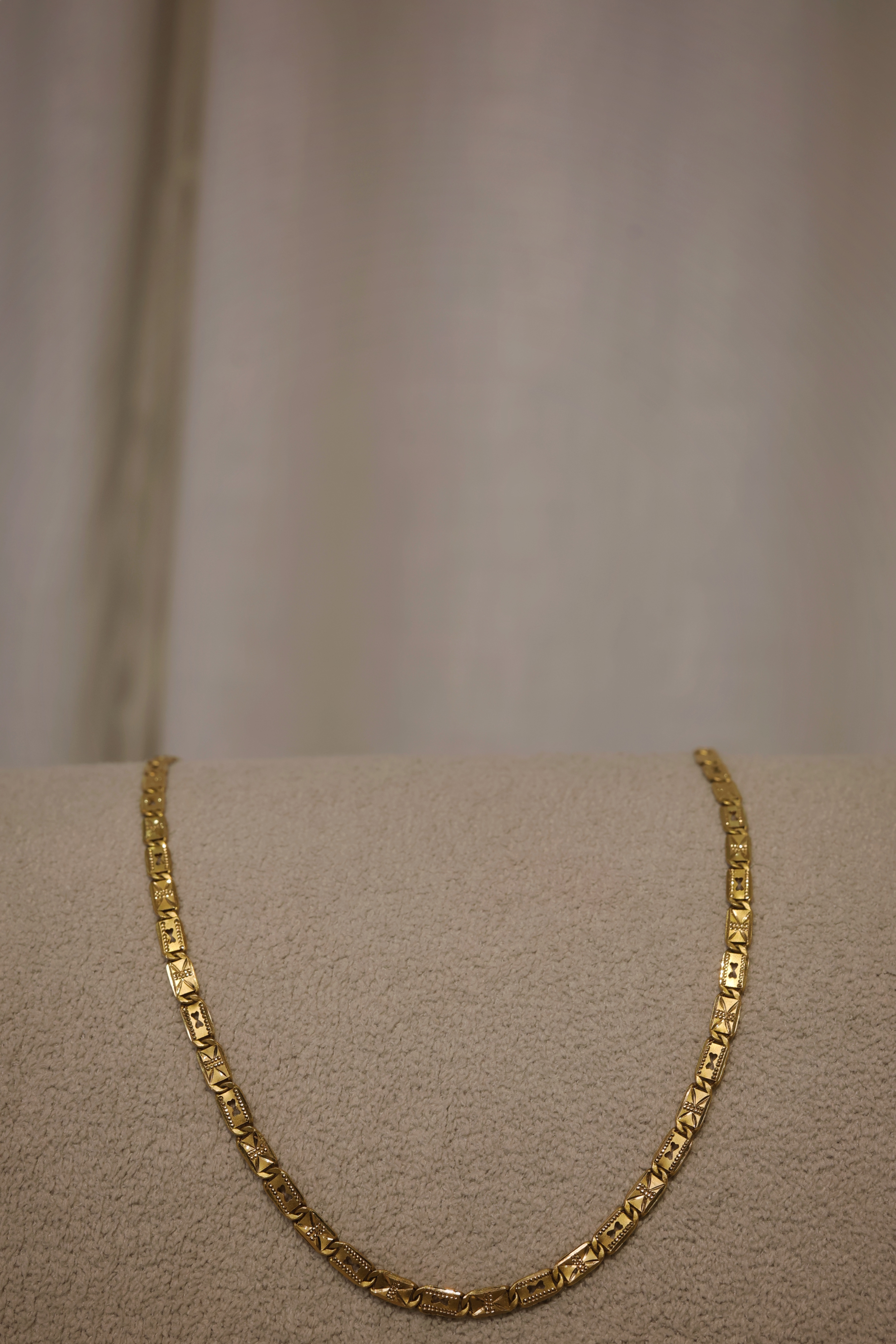 This 22K Gold Men’s Box Link Chain is crafted for men who appreciate a balance of strength and sophistication. The neatly structured box-style links give the chain a masculine, confident look while maintaining a refined finish. Its polished surface reflects light beautifully, enhancing the richness of pure gold without appearing flashy.