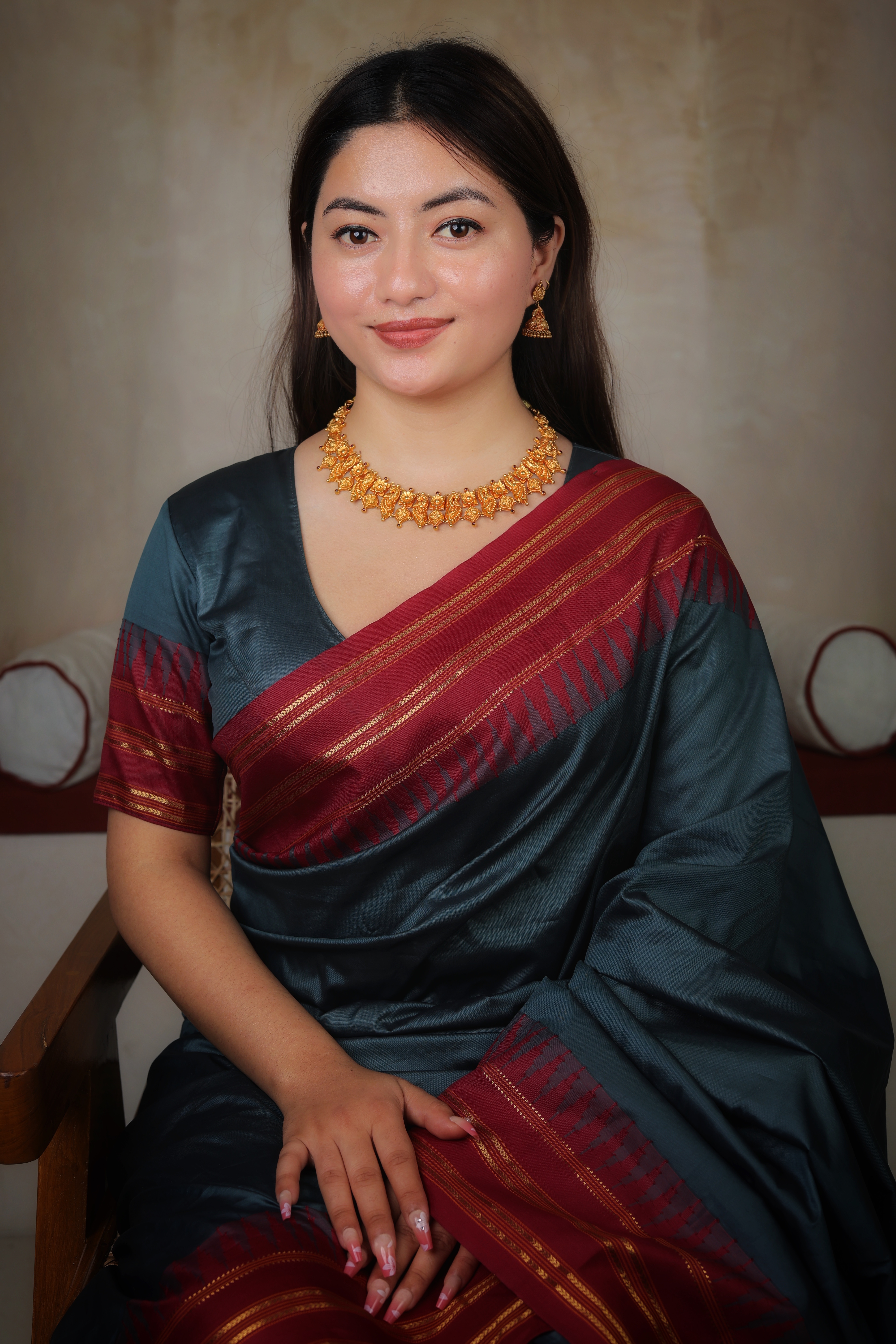 This temple jewellery set pairs effortlessly with silk sarees, bridal attire, and ethnic ensembles, adding a royal and auspicious touch to your overall appearance.