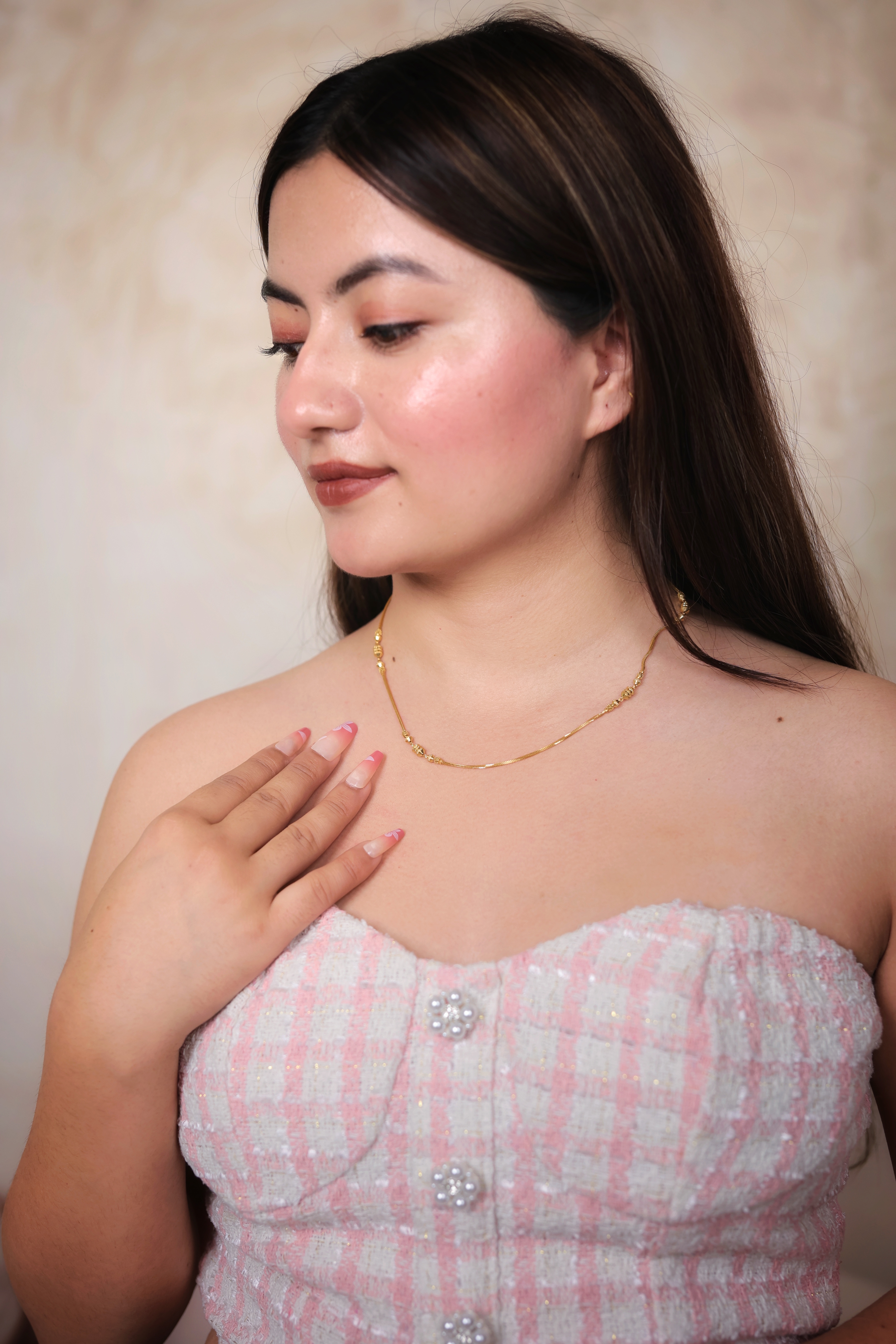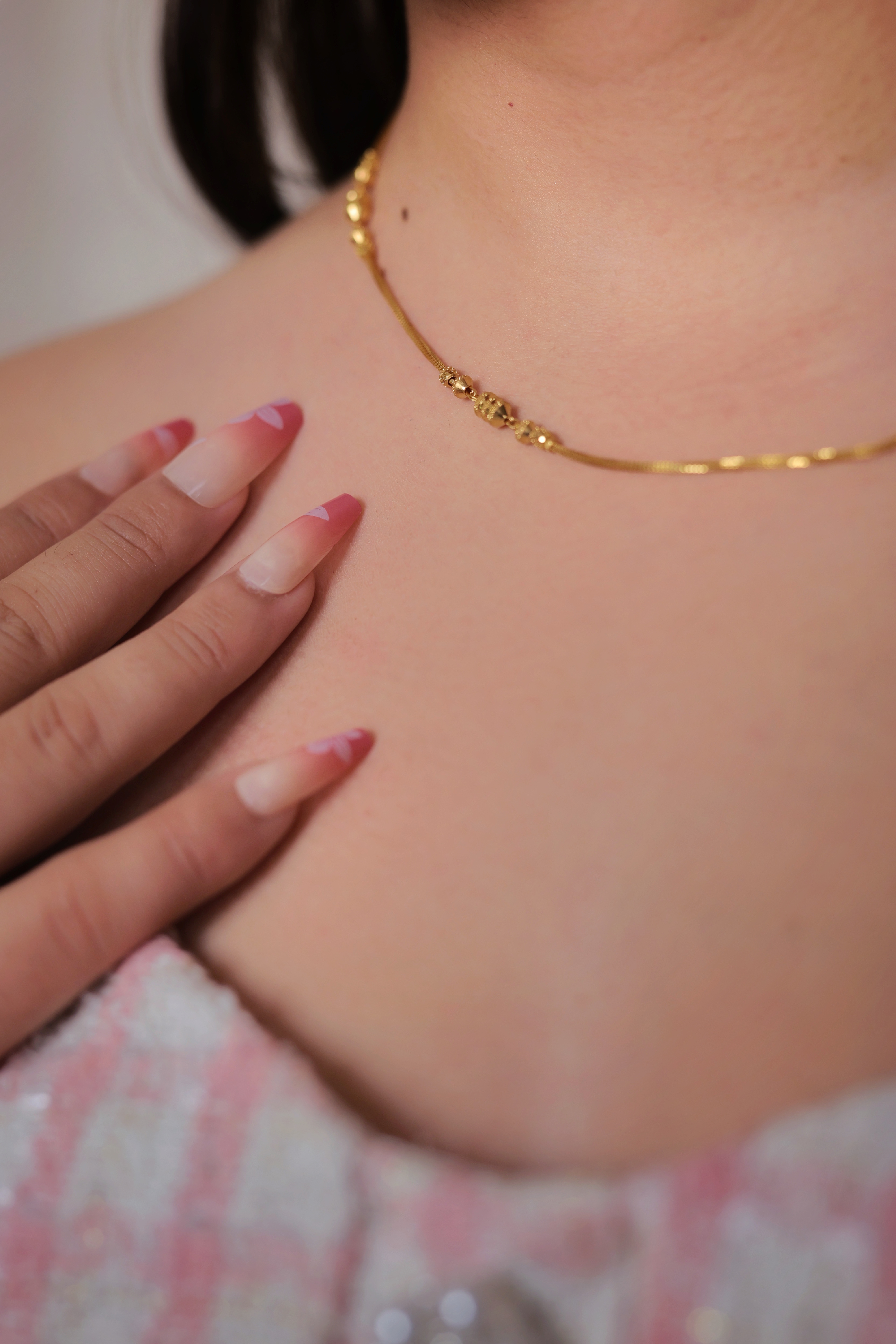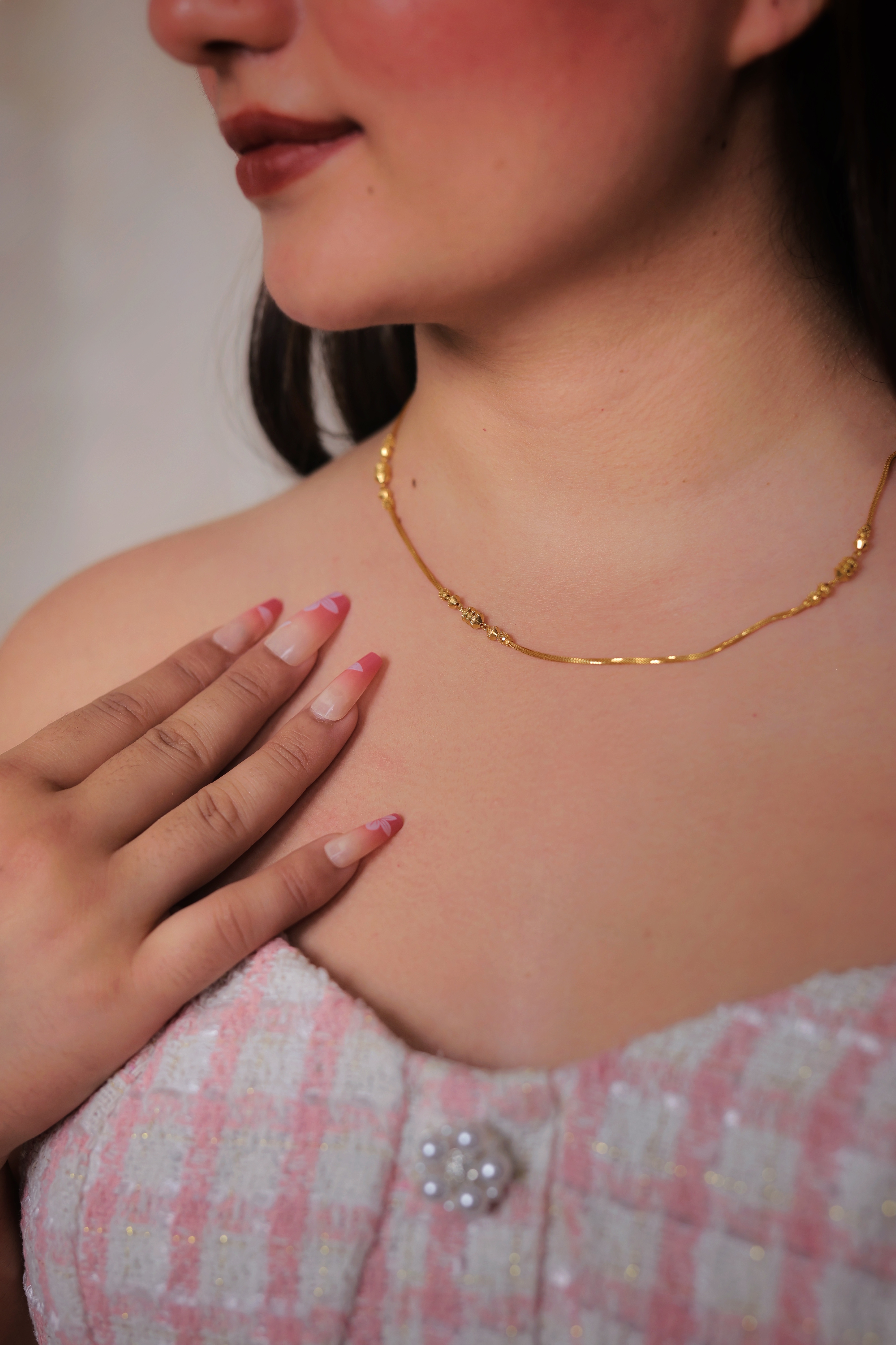 A lightweight and stylish 22K gold chain featuring delicate bead accents, perfect for daily wear and elegant pairing with any outfit.