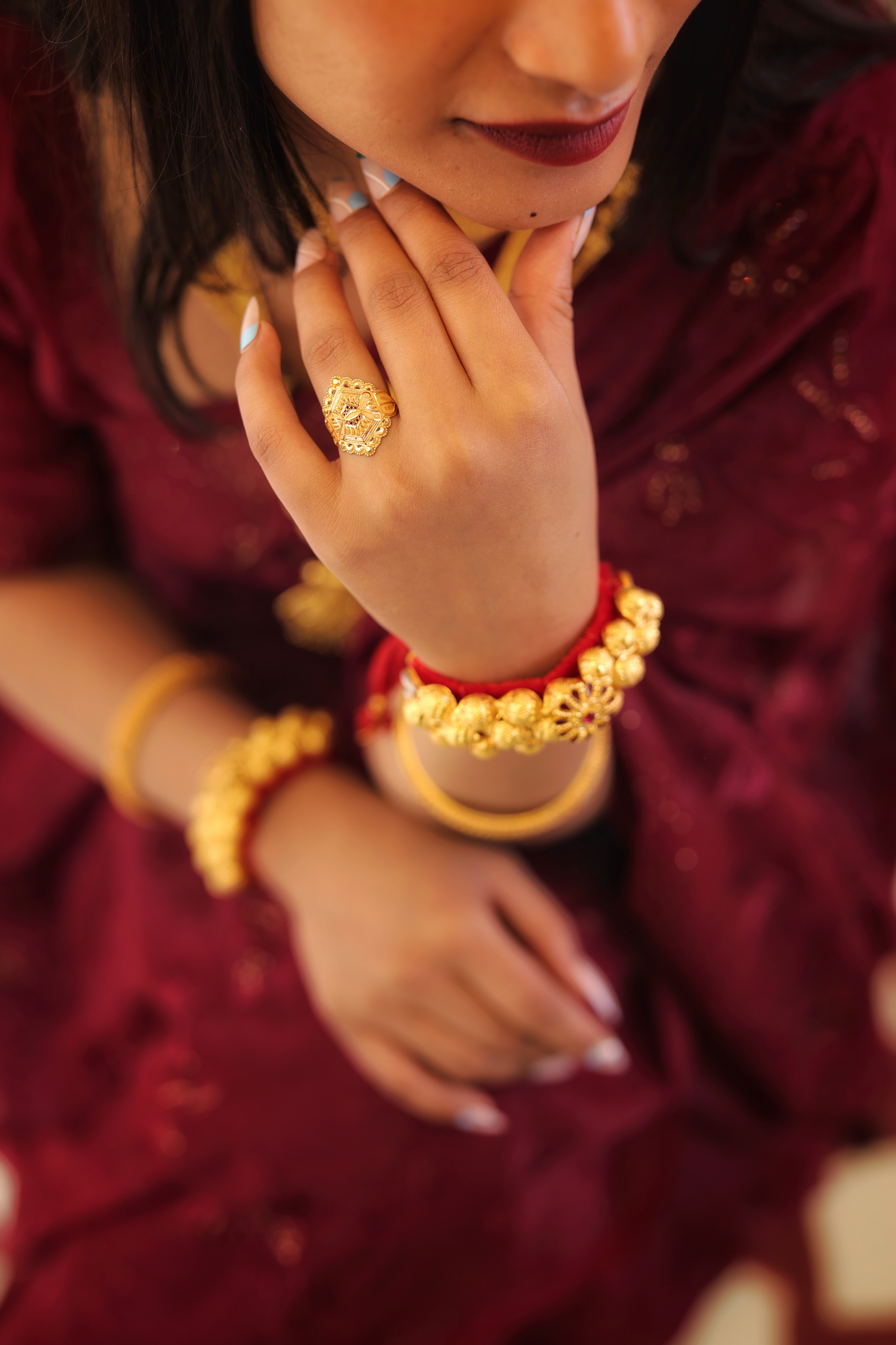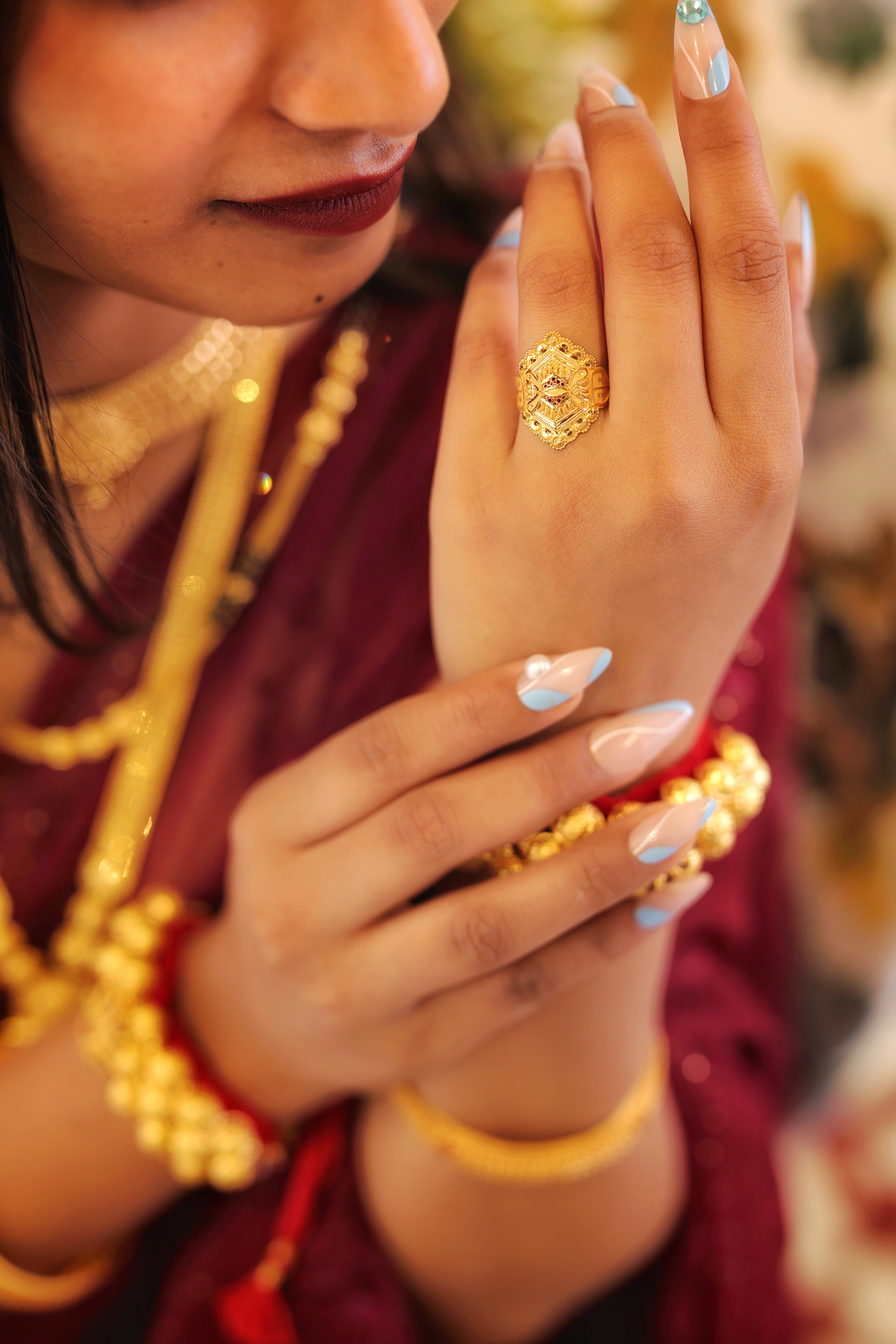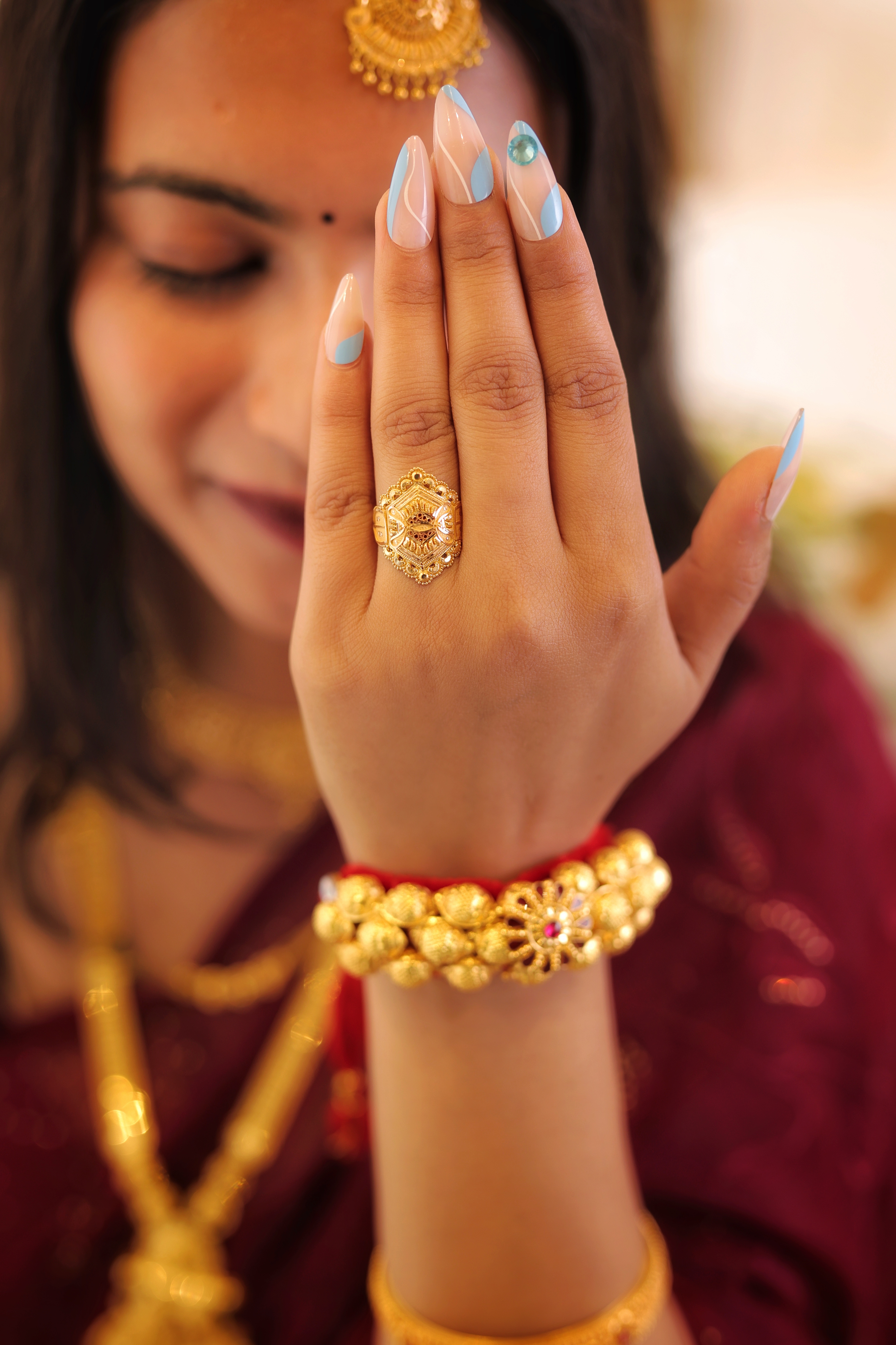Designed for women who appreciate classic gold craftsmanship, this ring pairs perfectly with festive attire, cultural outfits, and bridal looks. Its bold yet elegant structure offers a royal touch while maintaining everyday comfort.