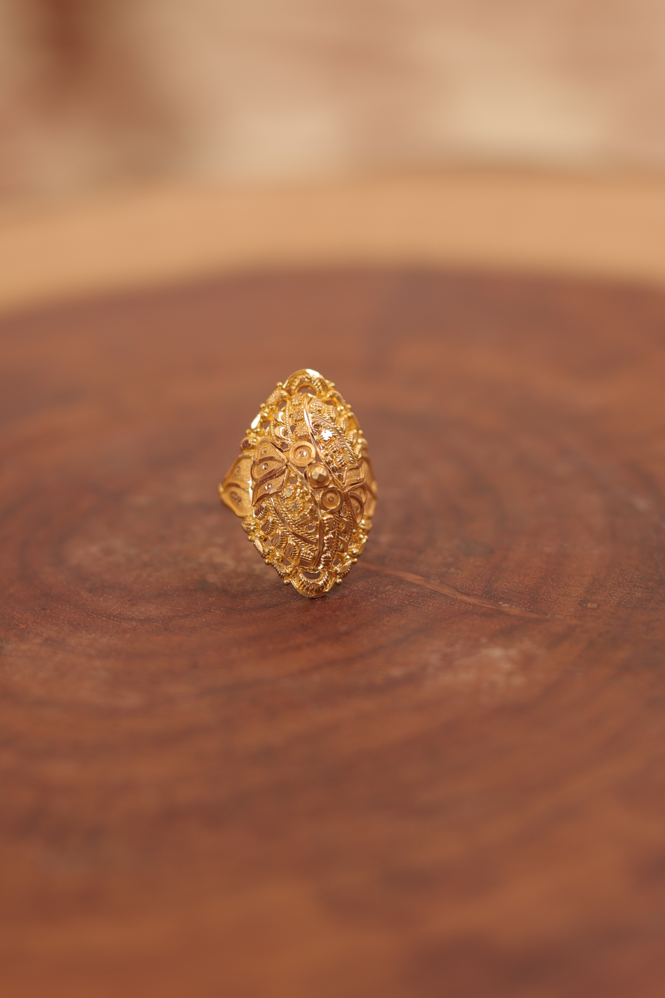 Elaborate 22K Gold Navette Ring | Traditional Oblong Filigree Design