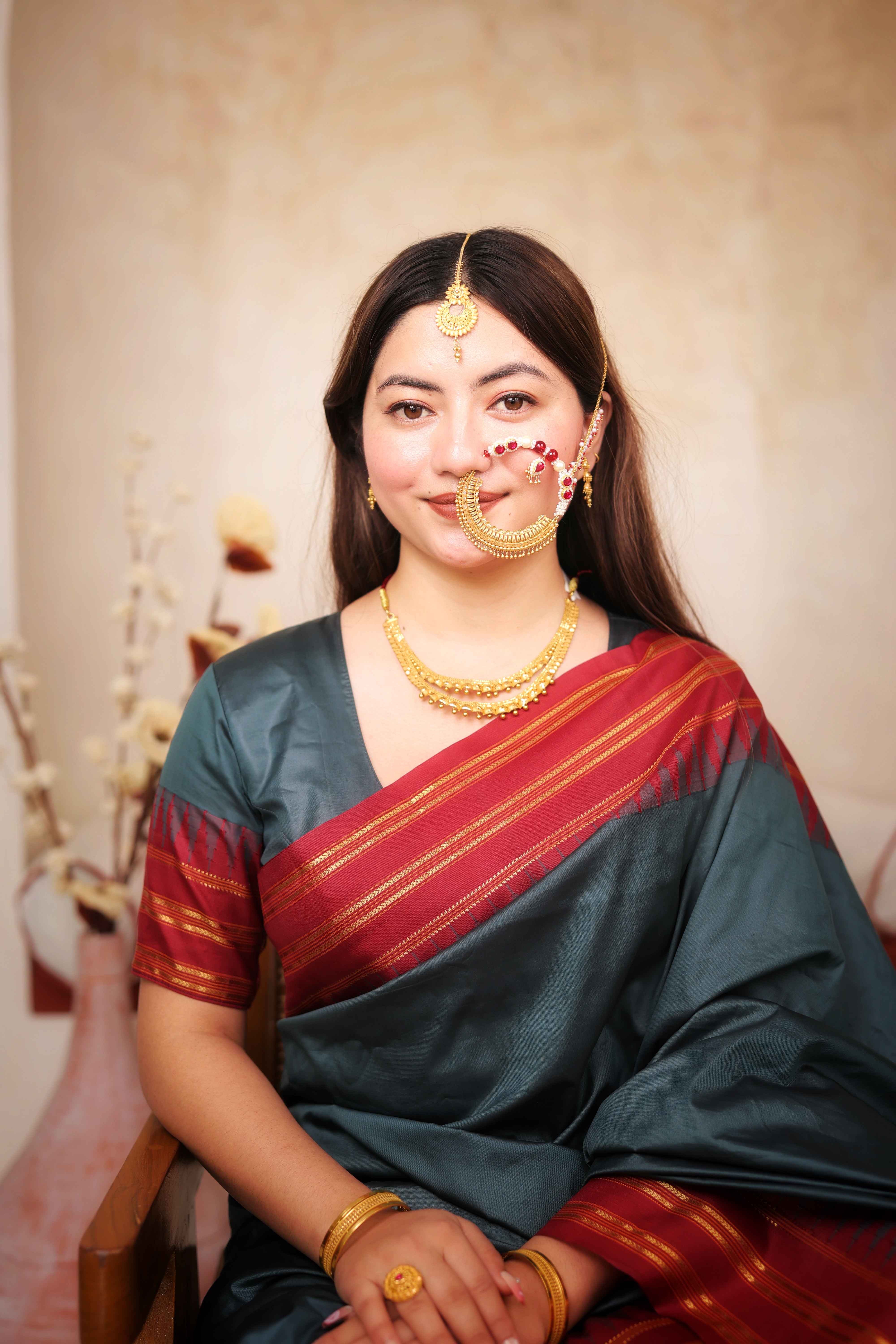 This is an elegant traditional jewelry set, suitable for semi-formal to ceremonial wear, crafted in rich 22-carat yellow gold (916 purity).