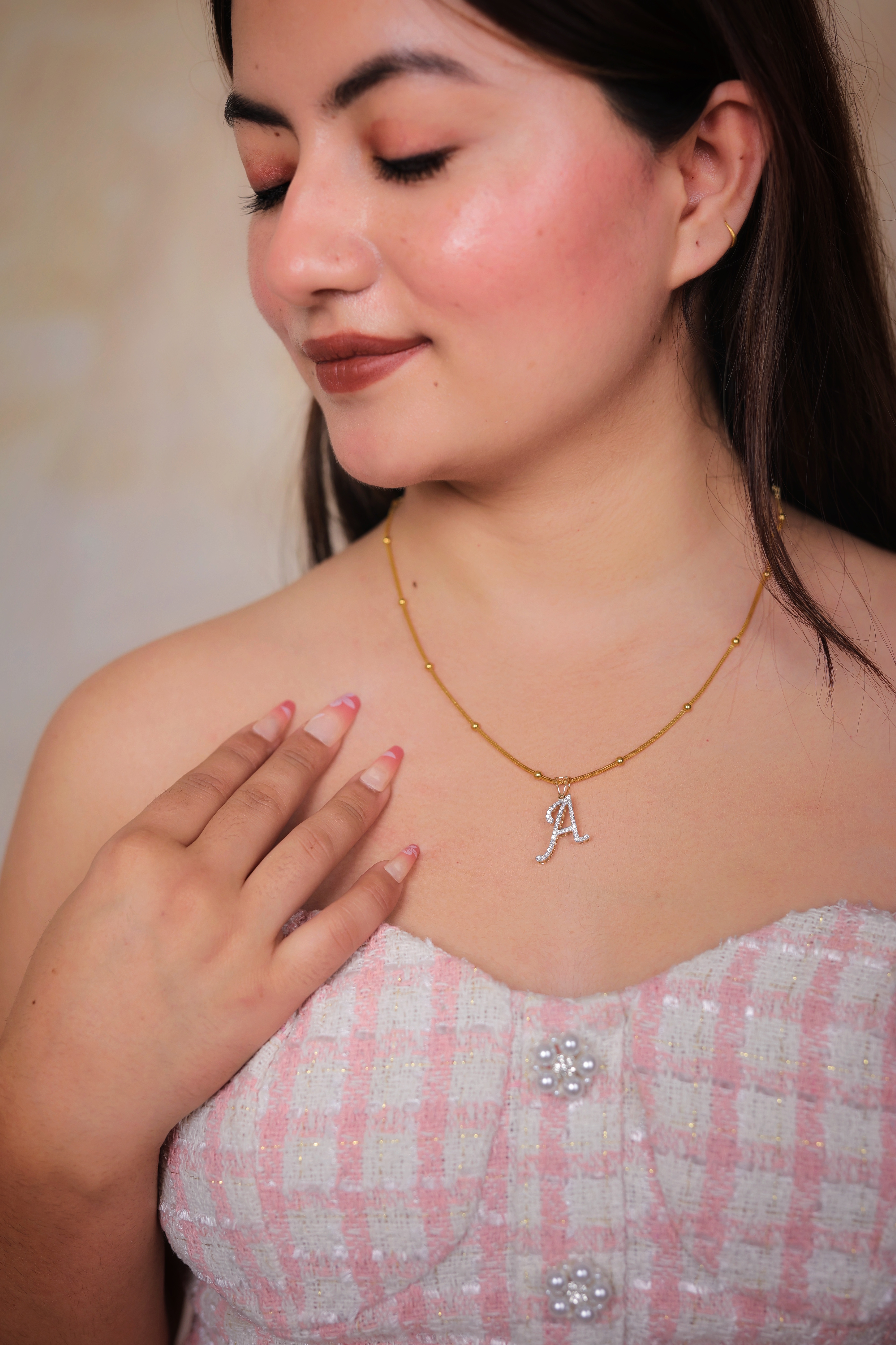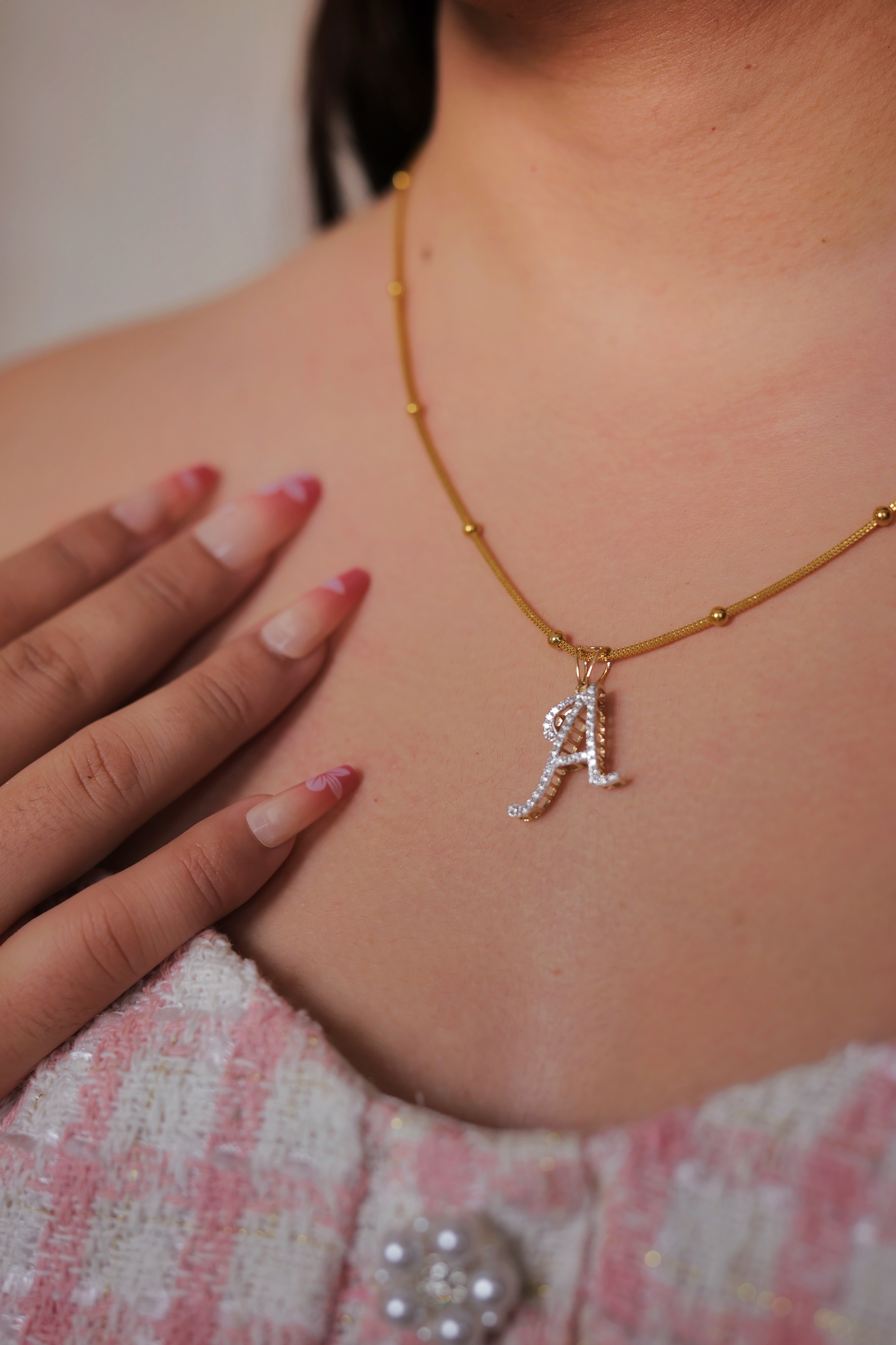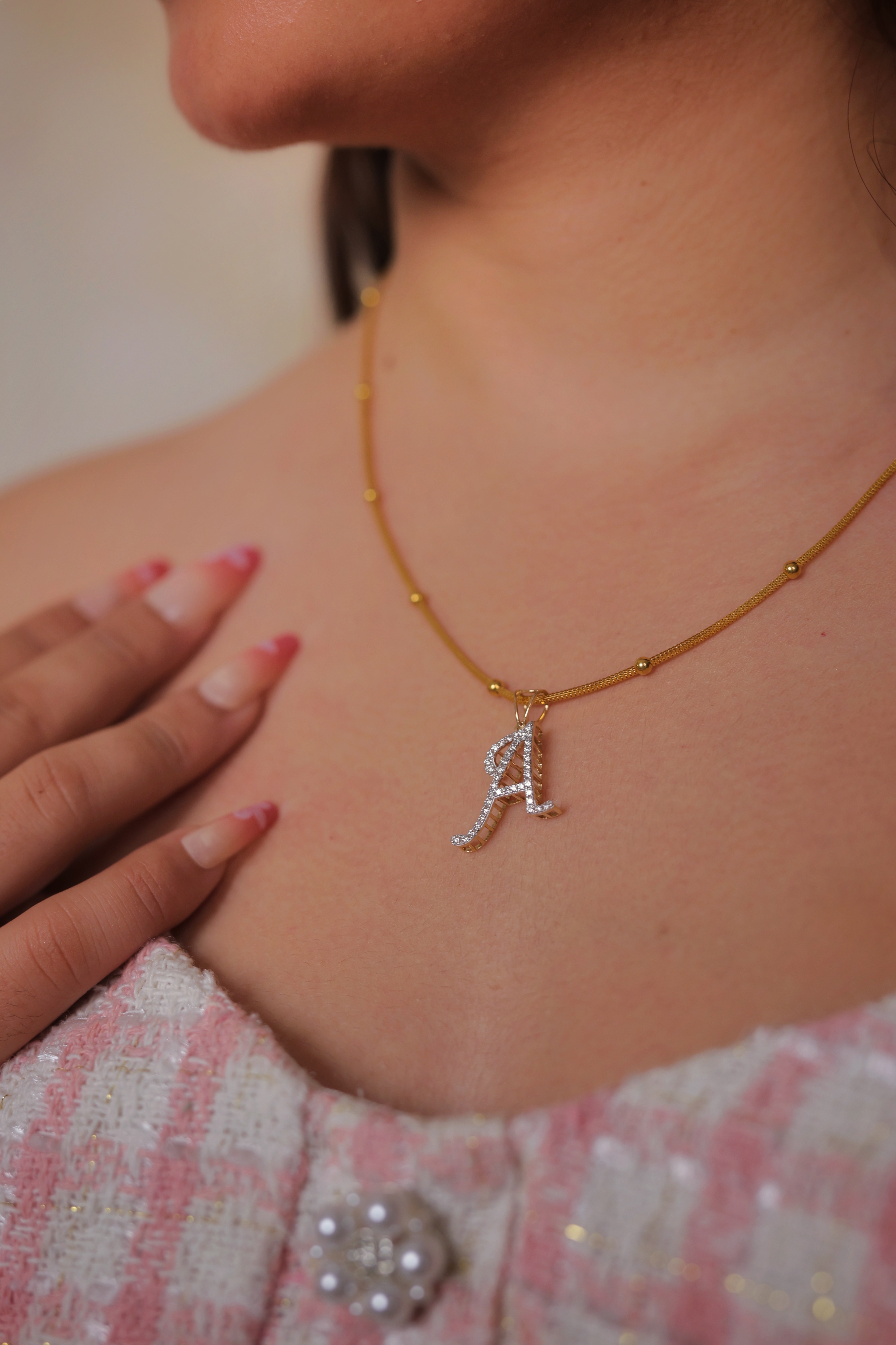 Key Features:Design: Modern initial pendant in the shape of the cursive letter 'A'. Embellishments: Paved with white stones (diamonds/CZ) for maximum sparkle. Craftsmanship: Fine gold metalwork for a delicate yet striking everyday piece. Metal Purity: 22 Carat Yellow Gold (916 purity). Usage: Ideal for daily wear, personalized gifting, or pairing with any fine chain.