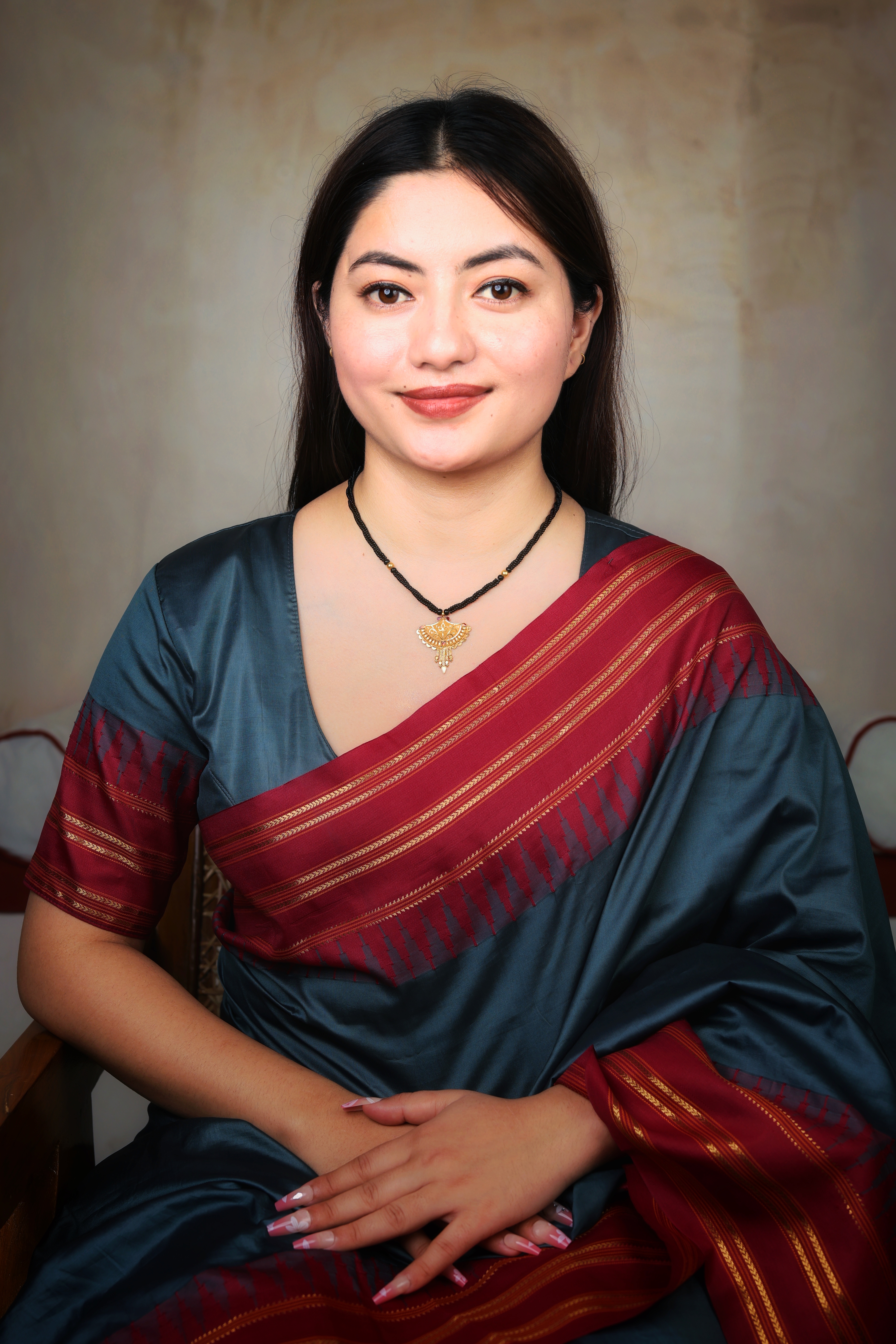 Key Features:Design: Short-length Mangal Sutra featuring a substantial, fan/leaf-shaped pendant. Chain: Traditional double strand of black beads accented with solid gold balls. Pendant Details: Highly textured surface with fine goldwork, subtle red accents, and multiple dangling gold drops/tassels. Metal Purity: 22 Carat Yellow Gold (916 purity). Usage: Essential traditional wear, daily wear, and ceremonial jewelry, perfect for a statement.