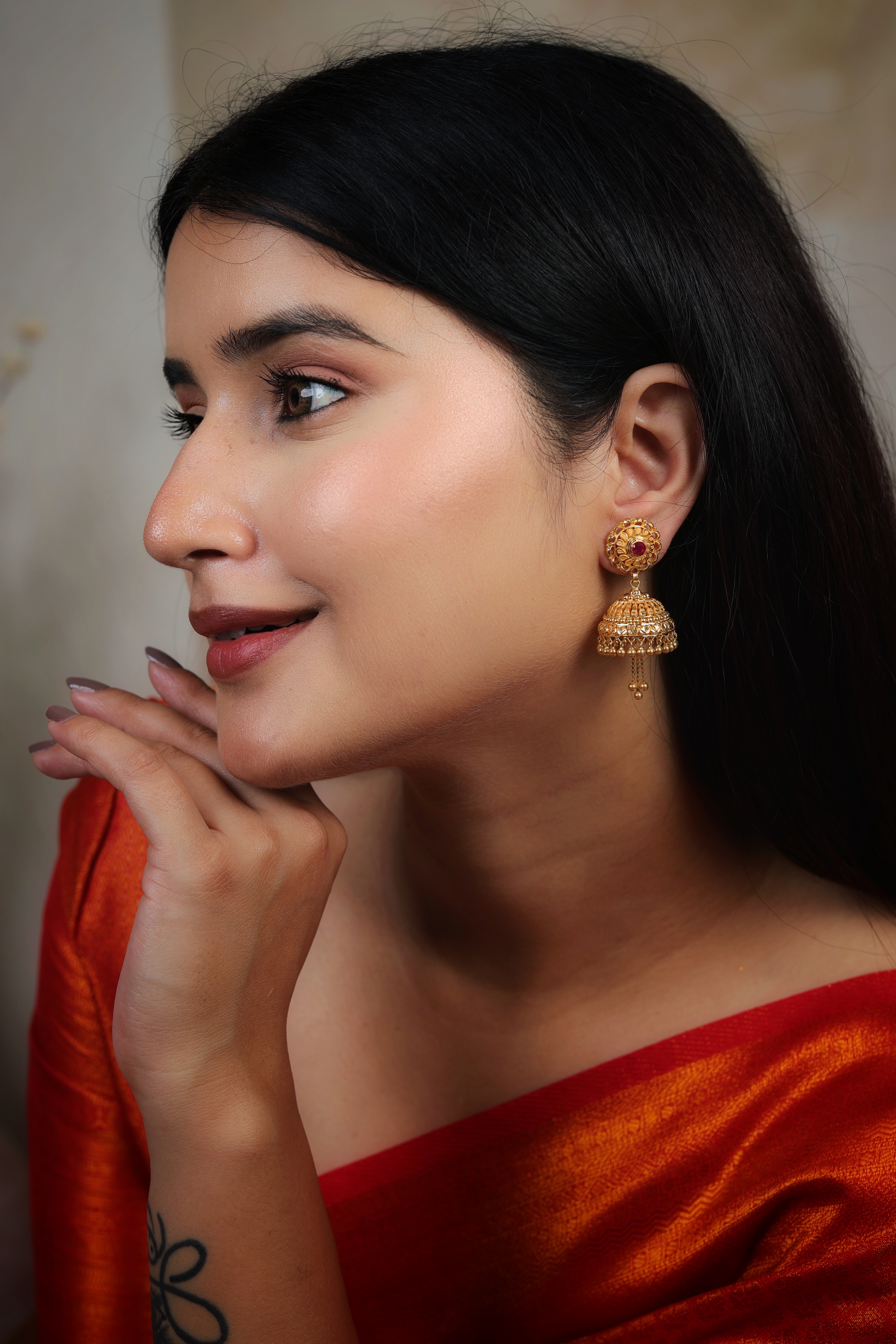 Floral Ruby-Studded Traditional Gold Jhumki Earrings