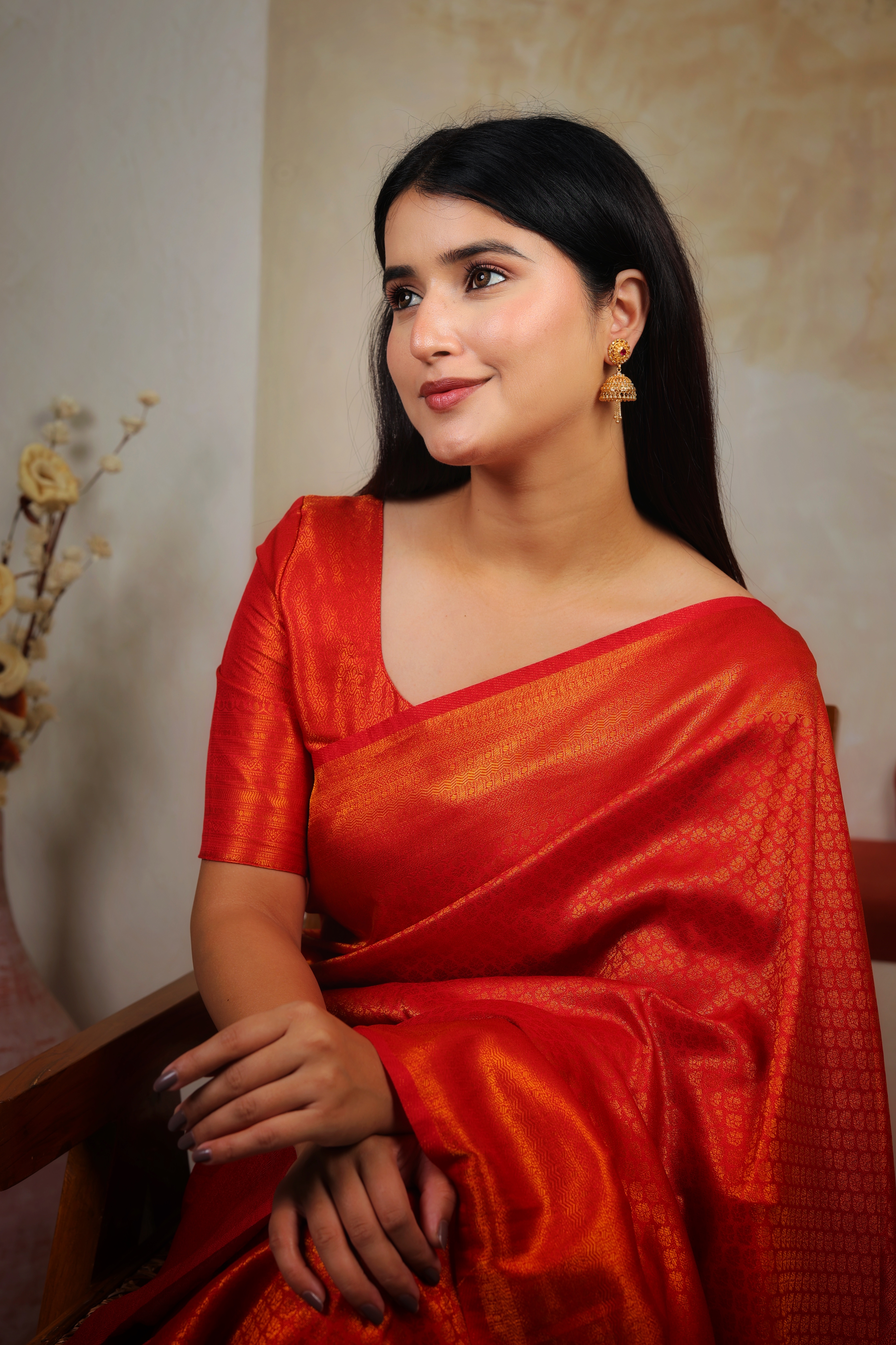 The Bell (Jhumka): The drop is a single, grand inverted bell. Its surface is a showcase of fine craftsmanship, featuring vertical ribbing, intricate wirework, and a decorative lattice-like pattern near the base. This textured work creates a beautiful interplay of light and shadow.