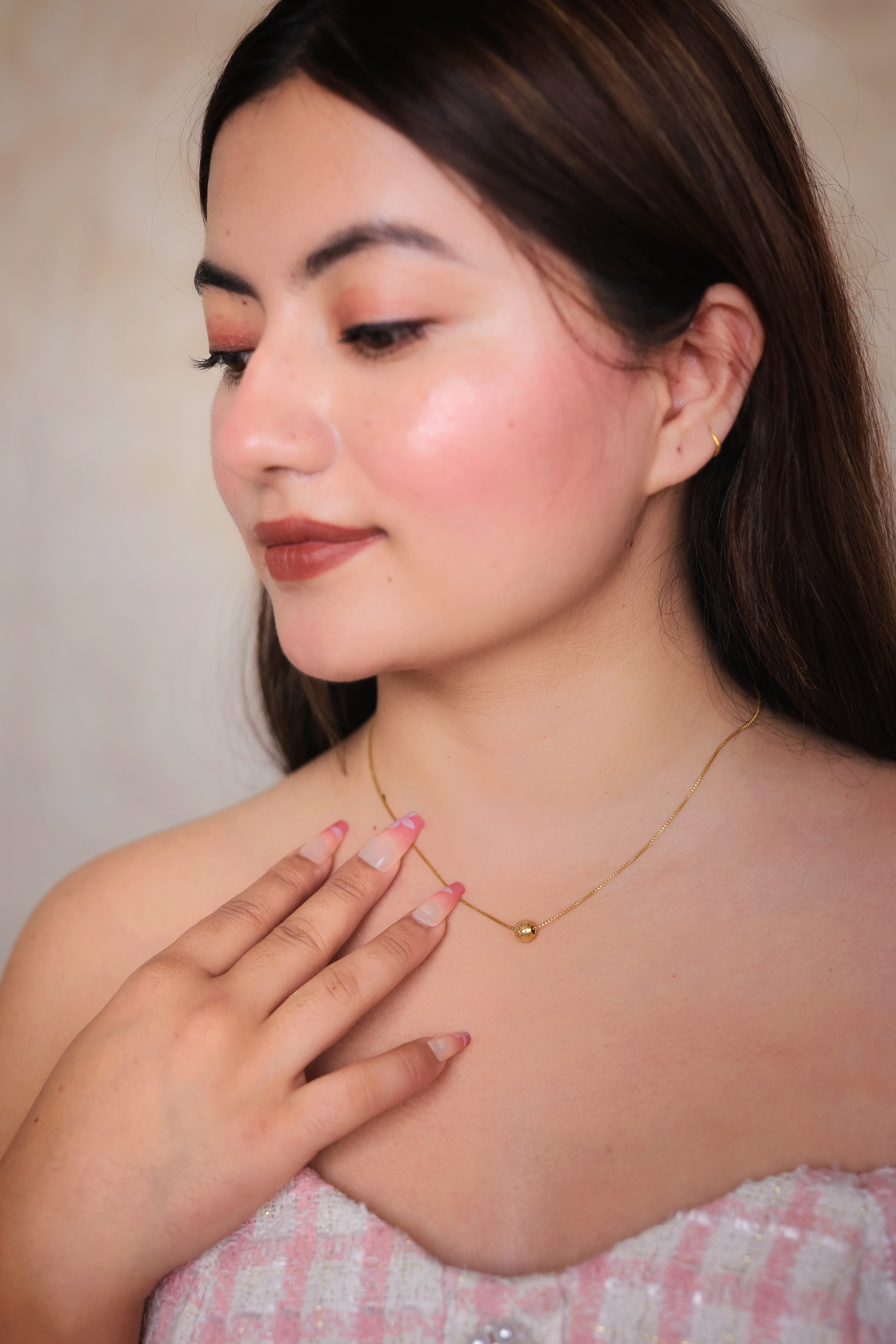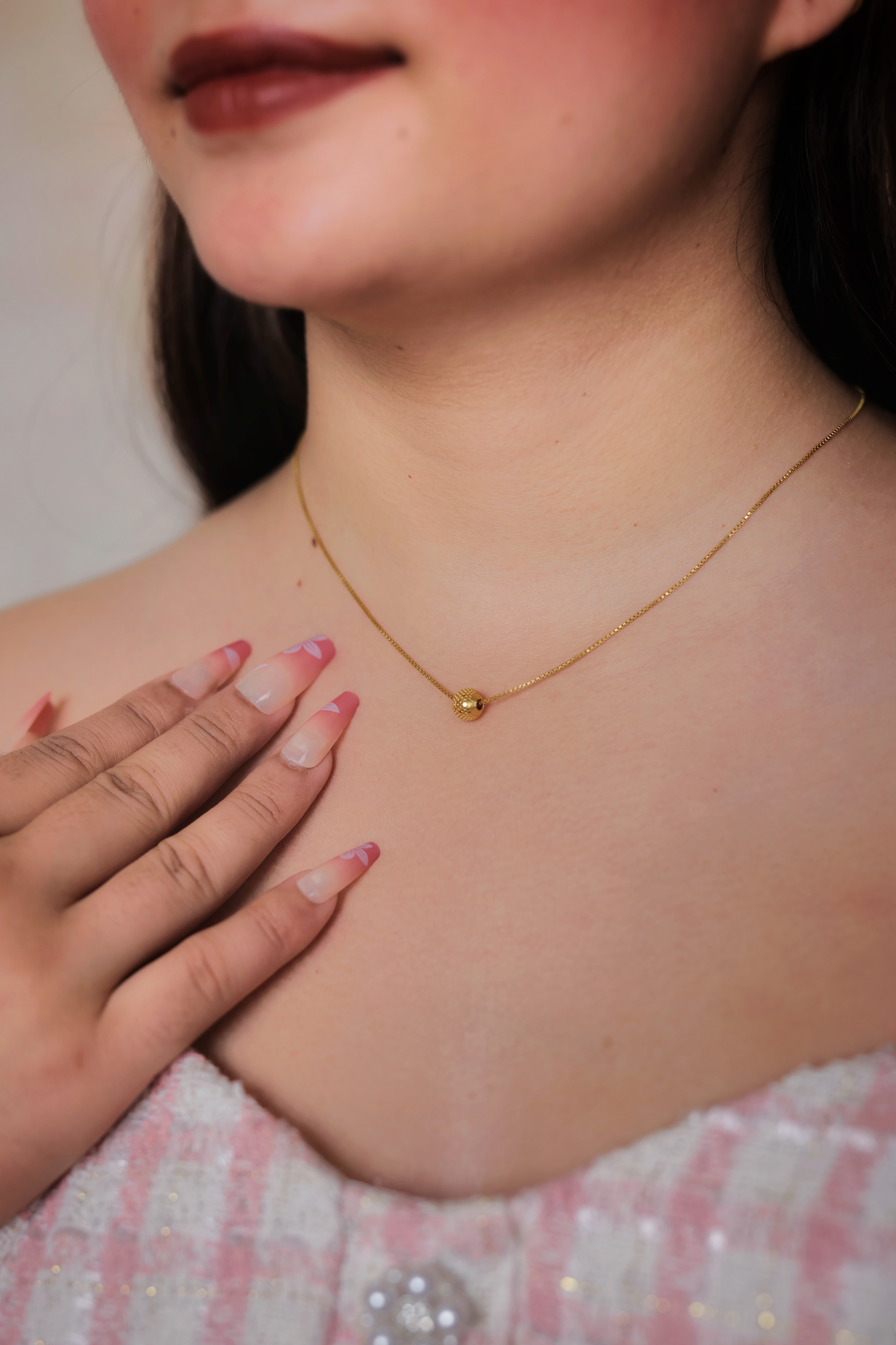 A delicate 22K gold chain featuring a finely crafted bead pendant, perfect for everyday elegance and lightweight wear.