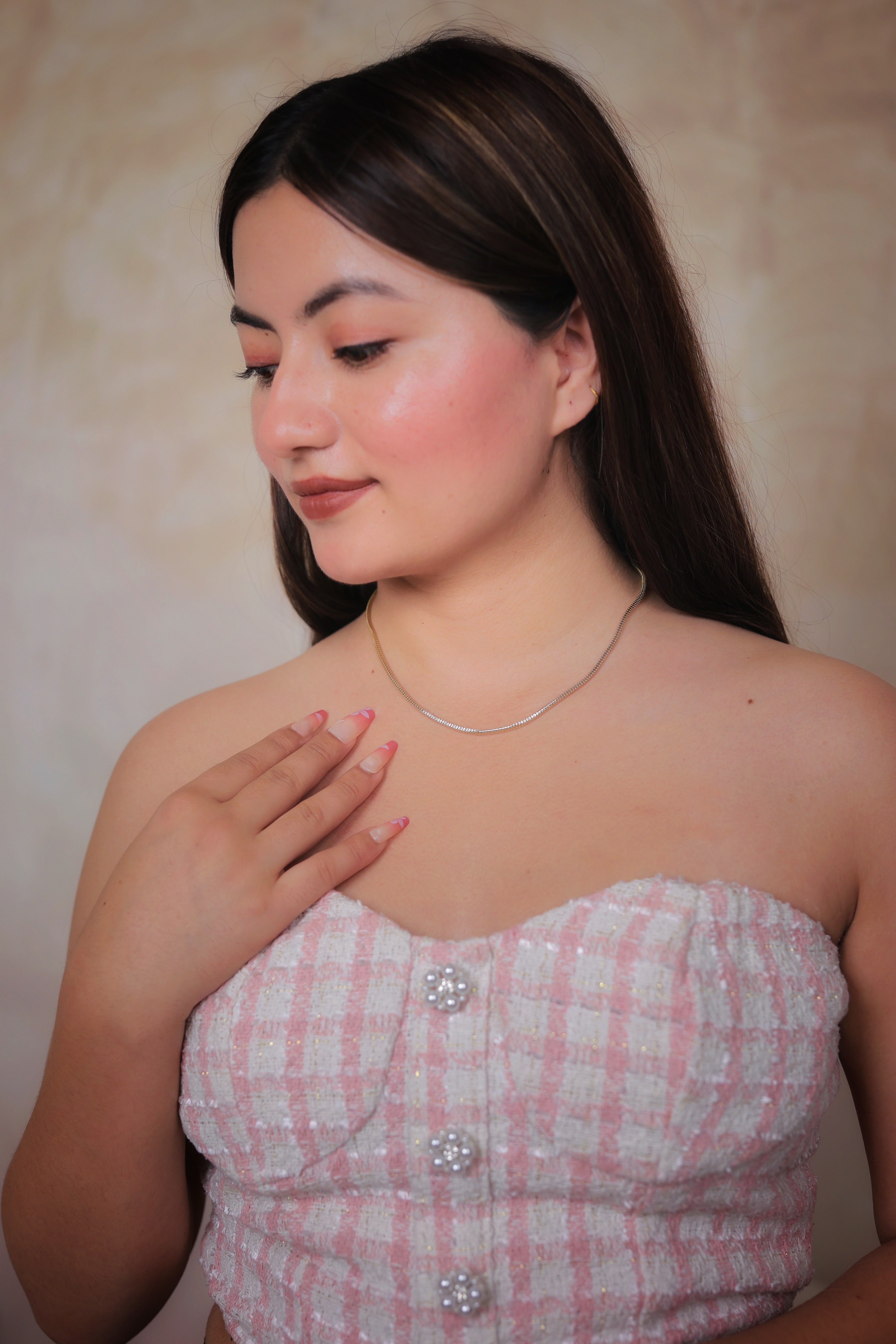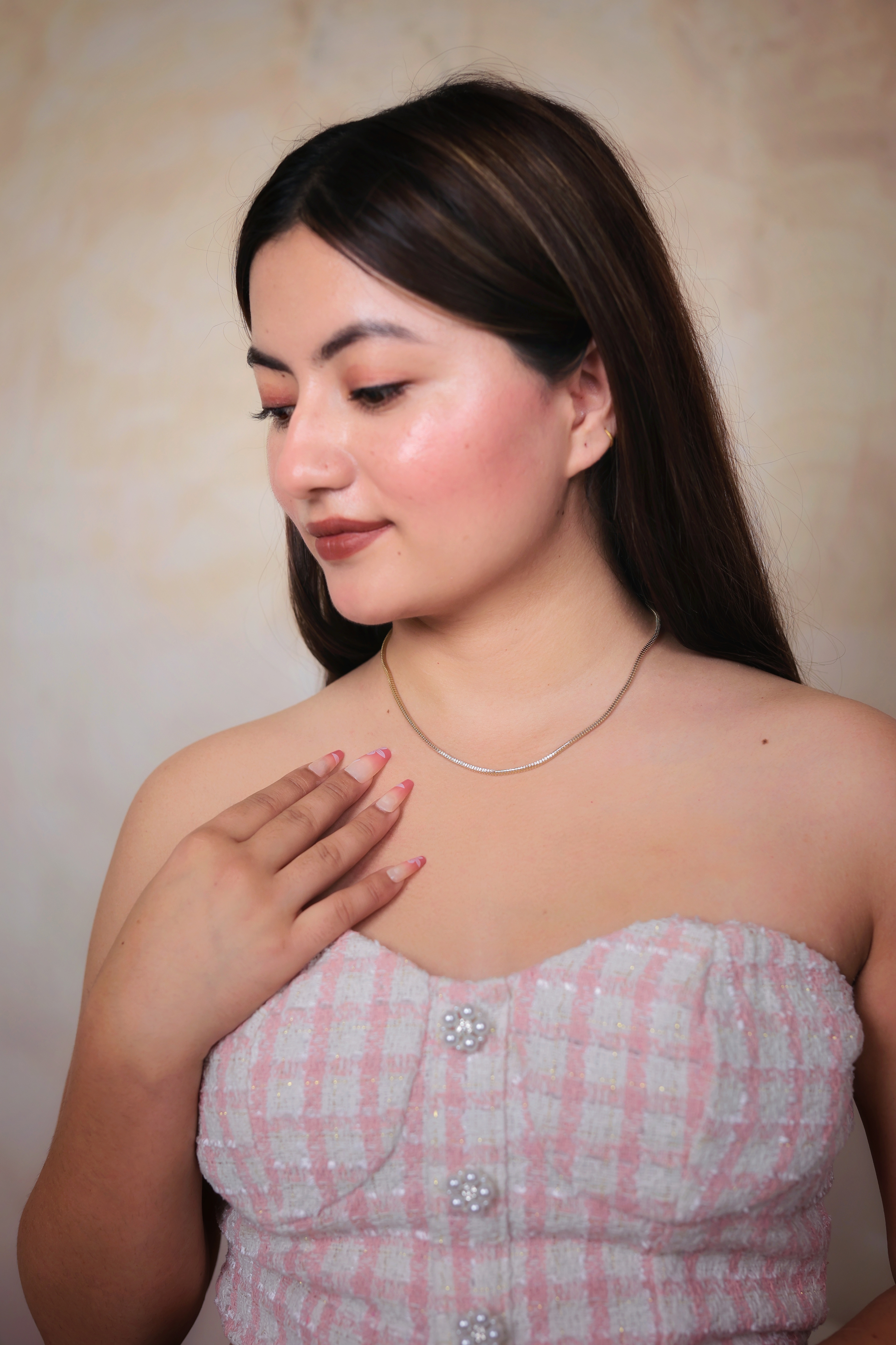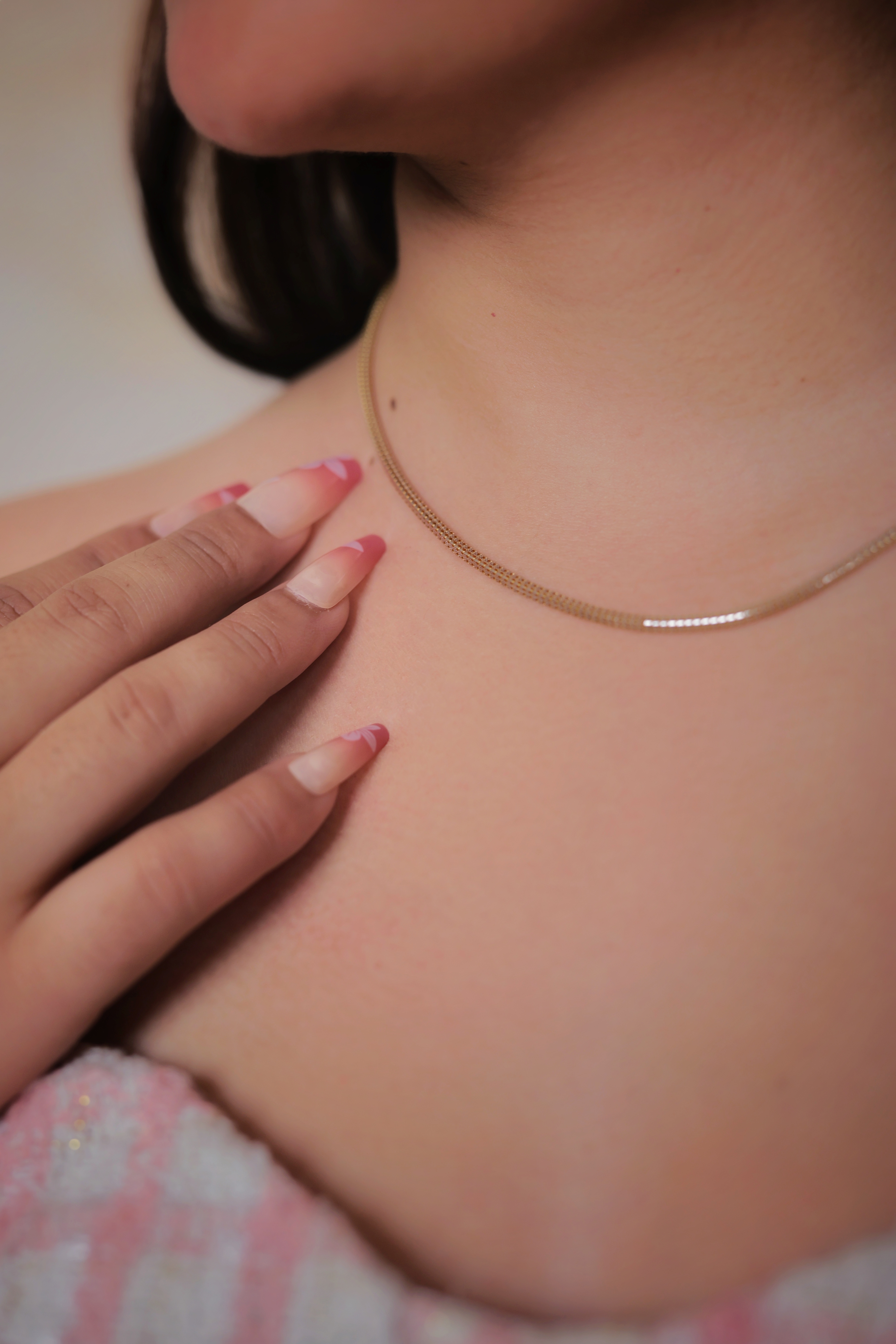 This chain sits beautifully on the neckline, offering a refined and graceful look. Whether styled alone or paired with a pendant, it enhances your natural elegance effortlessly.