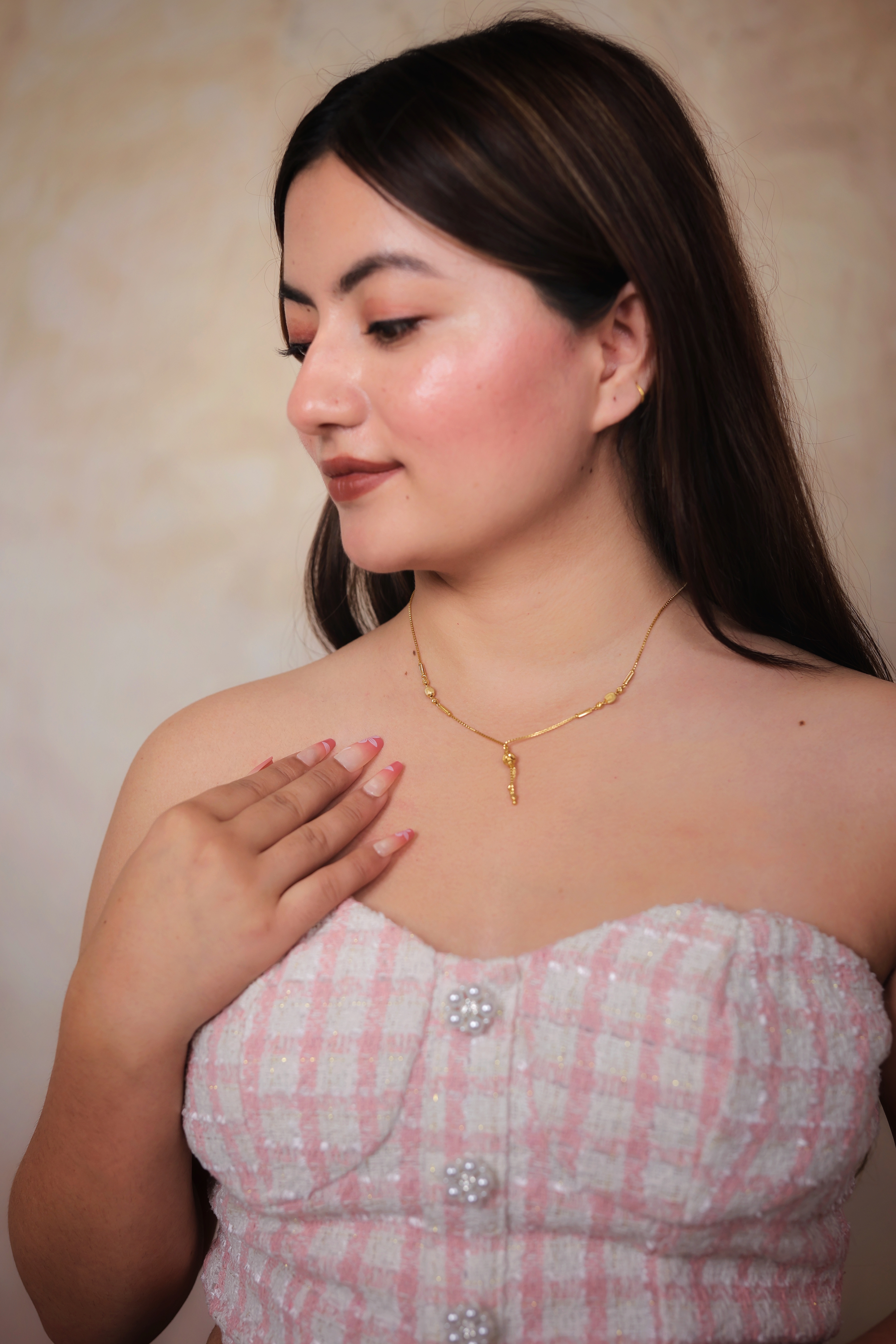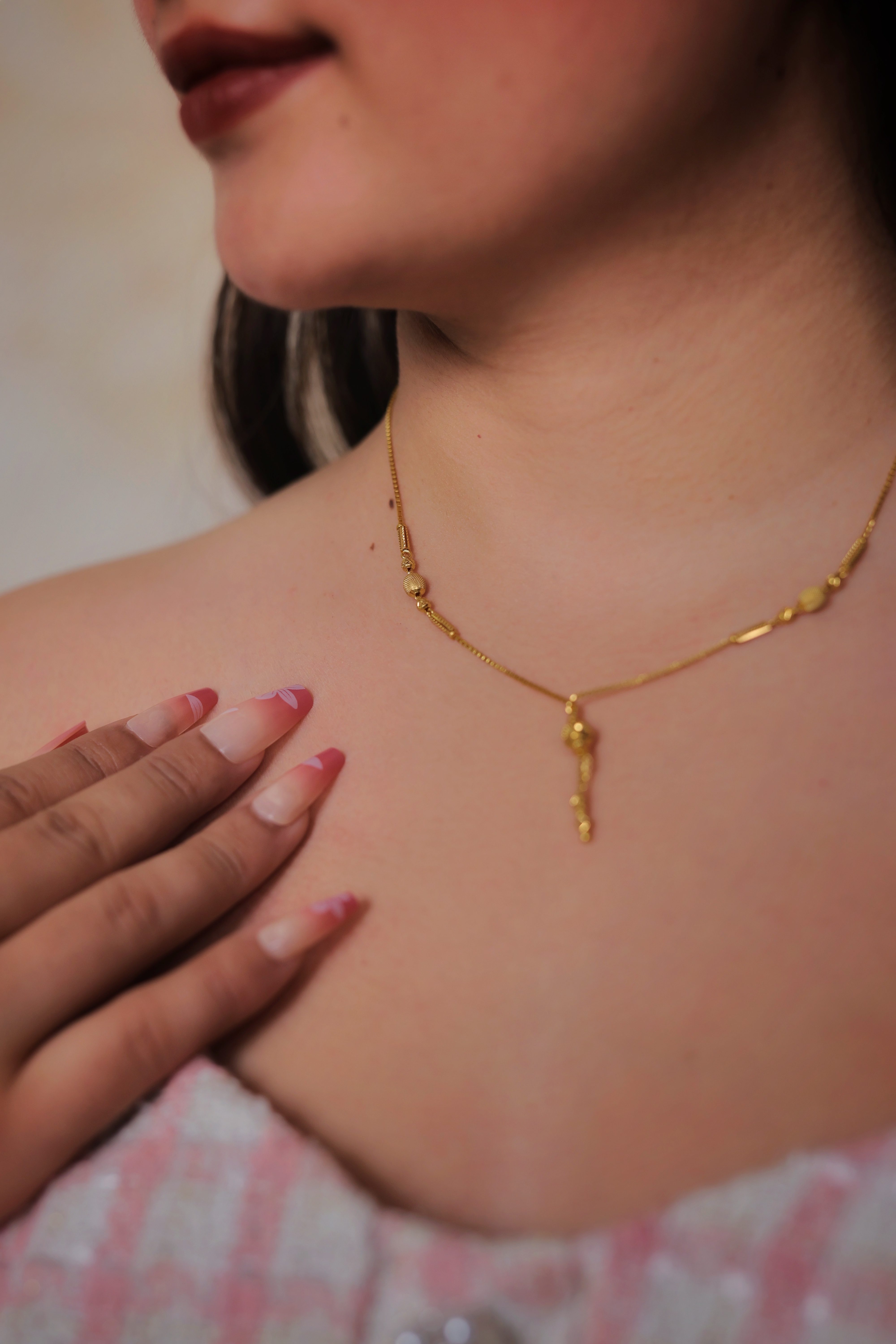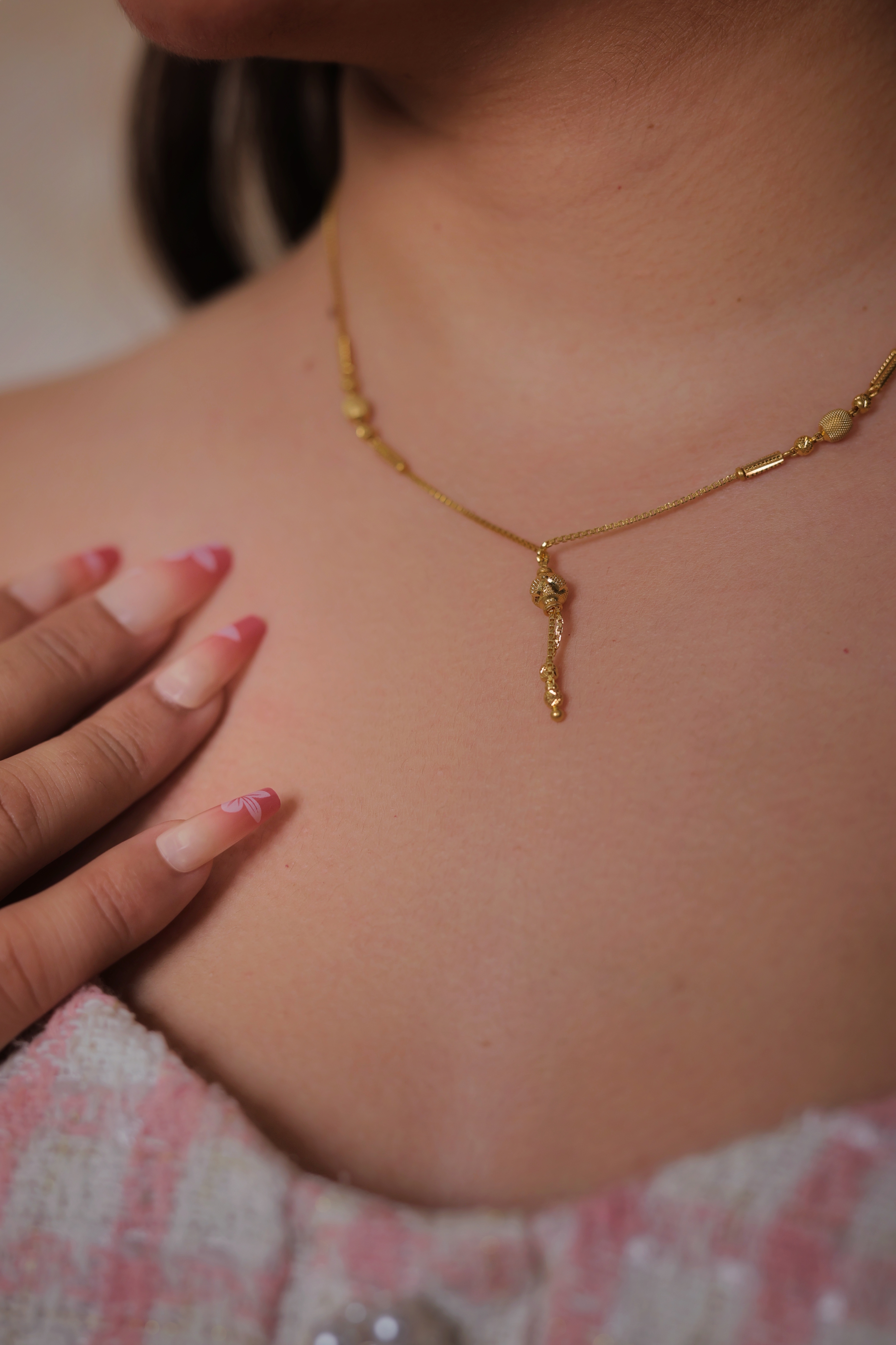A beautifully crafted lightweight gold chain designed with delicate beads and a stylish drop pendant—perfect for everyday elegance.