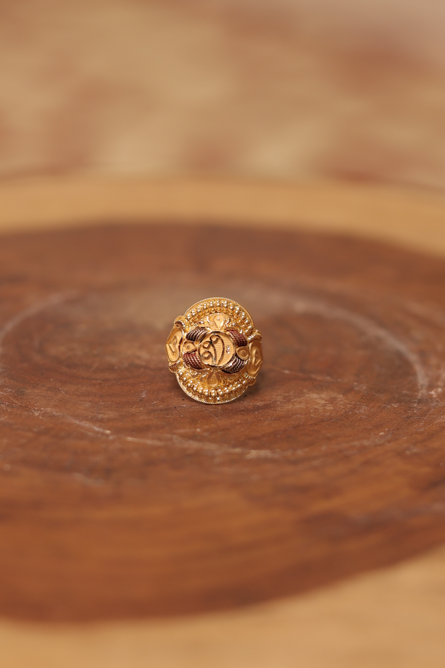22K Gold Designer Ladies Ring – Intricate Traditional Motif