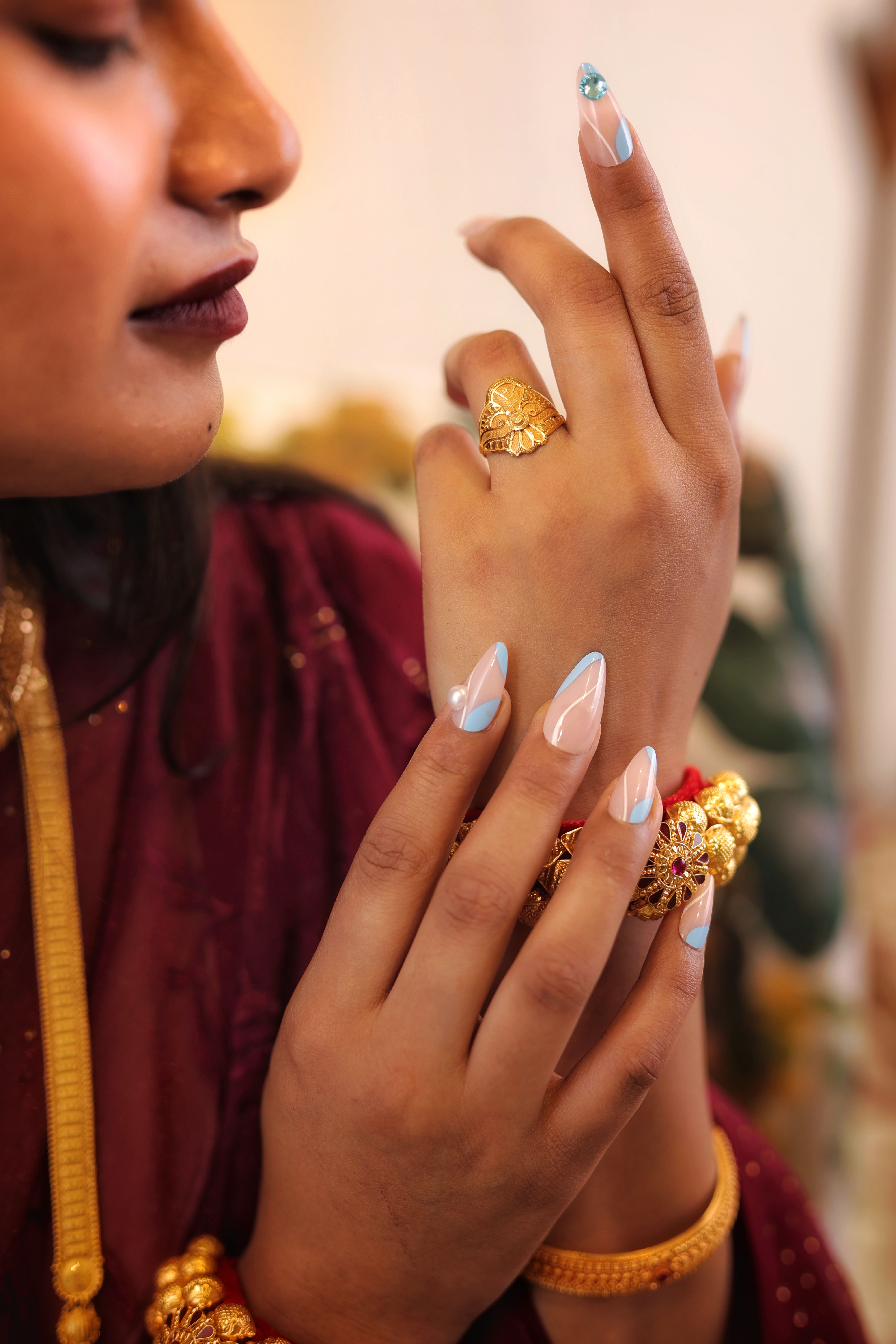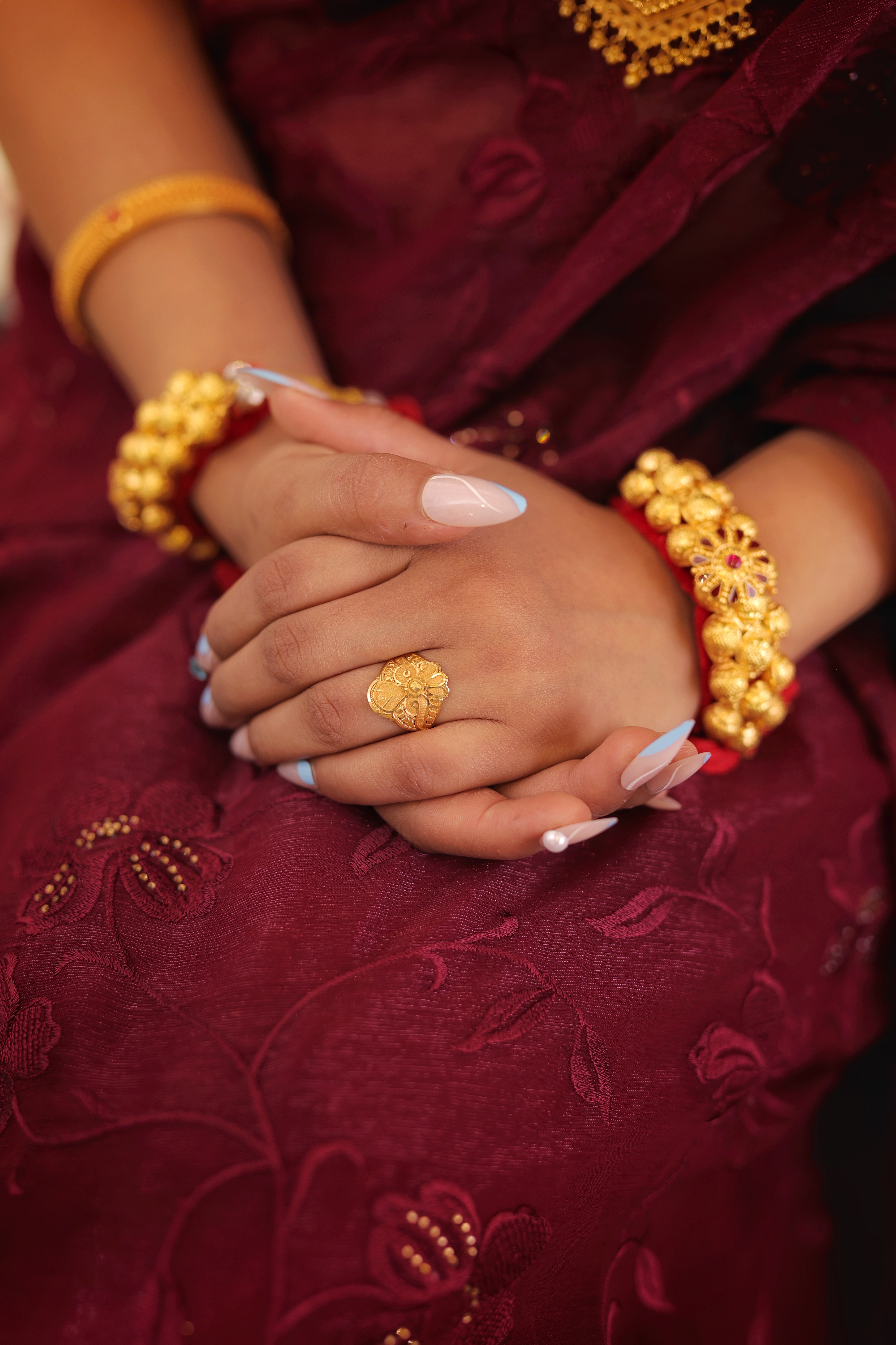 Shape: Unique, elongated diamond or kite motif. Craftsmanship: Fine filigree work, granulation, and chased patterns create a luxurious texture. Metal Purity: 22 Carat Yellow Gold (Assumed 916 purity). Usage: Ideal for special occasions, cultural events, or as a magnificent cocktail ring.