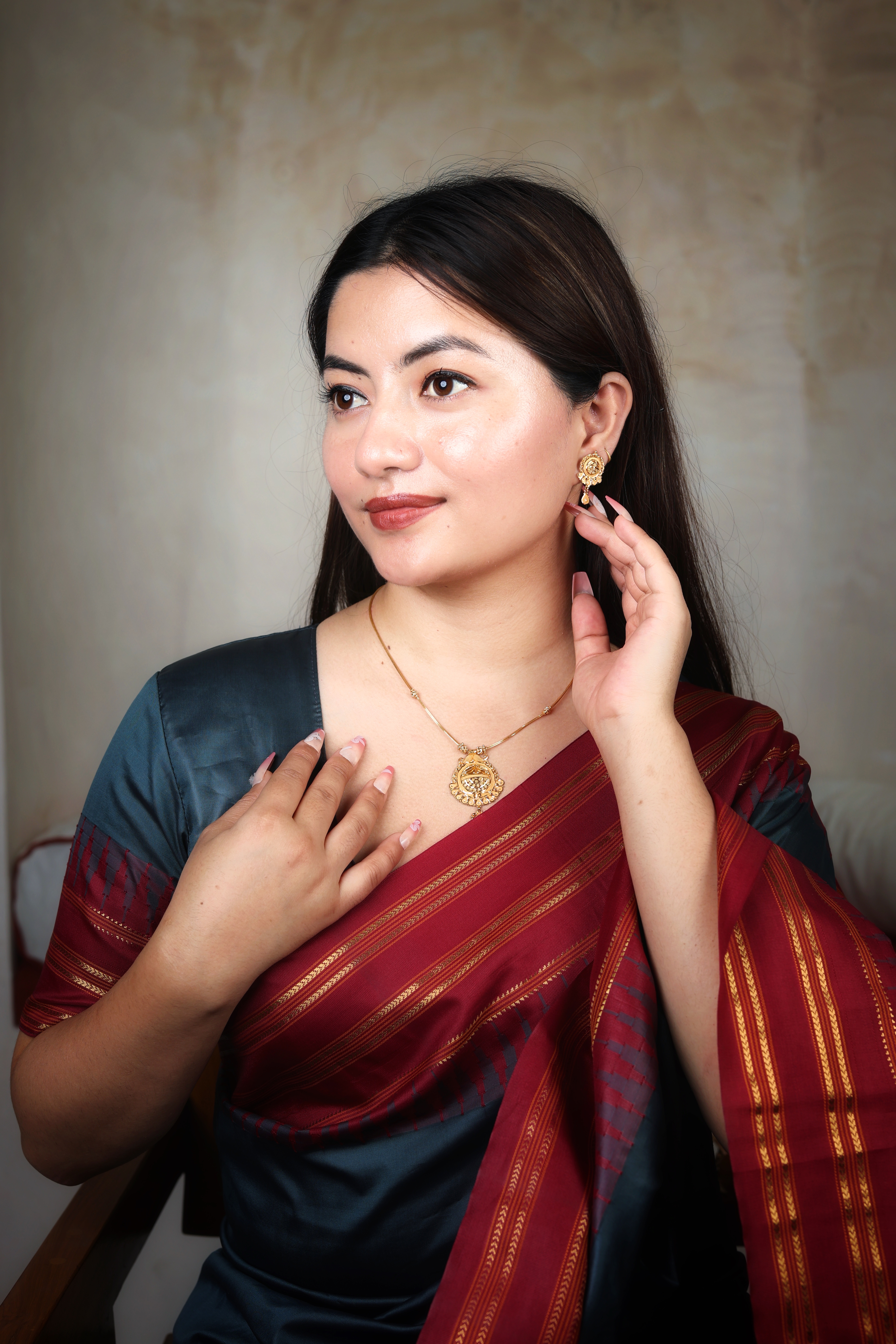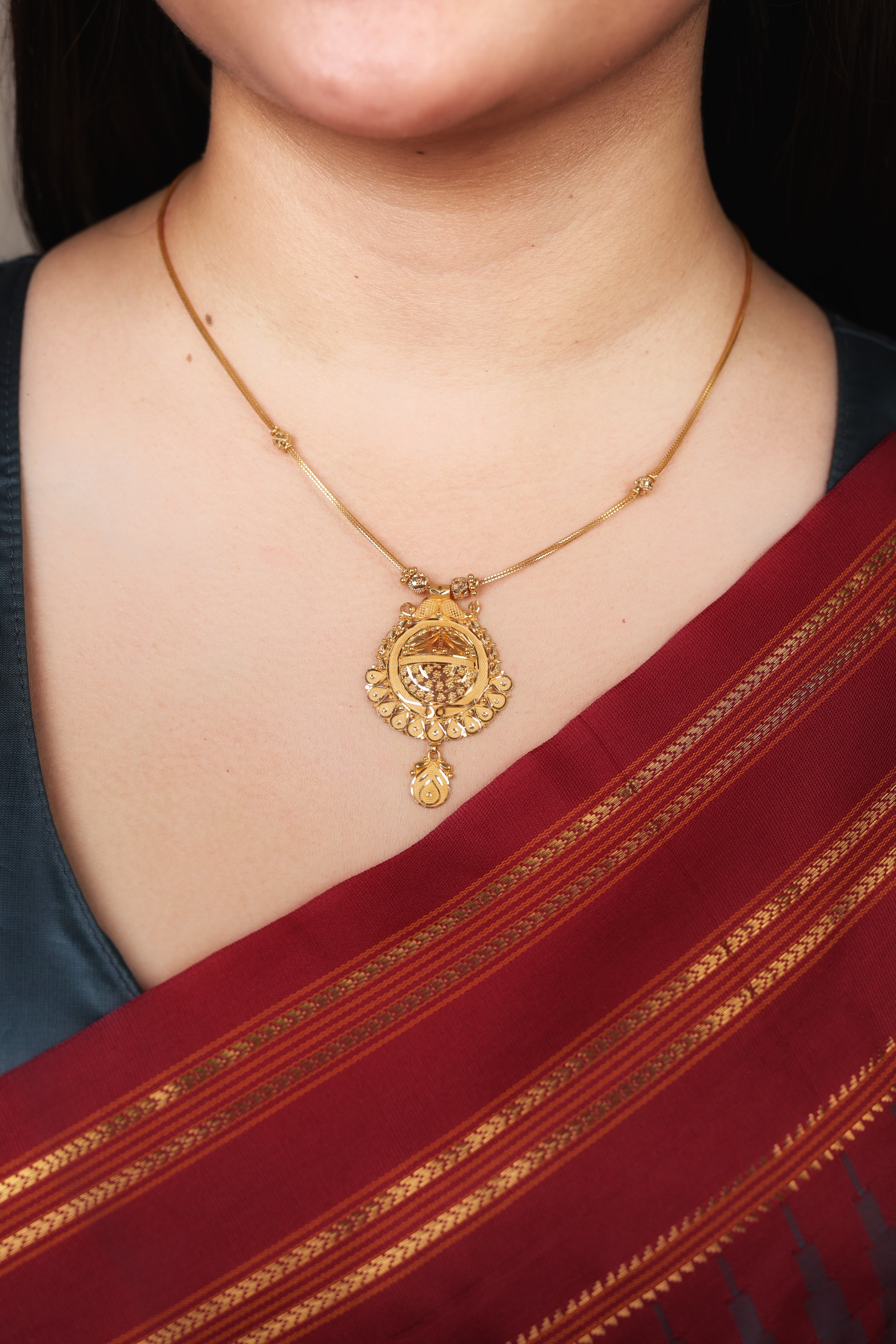 22K Gold Traditional Floral Medallion Pendant Necklace | Filigree Design