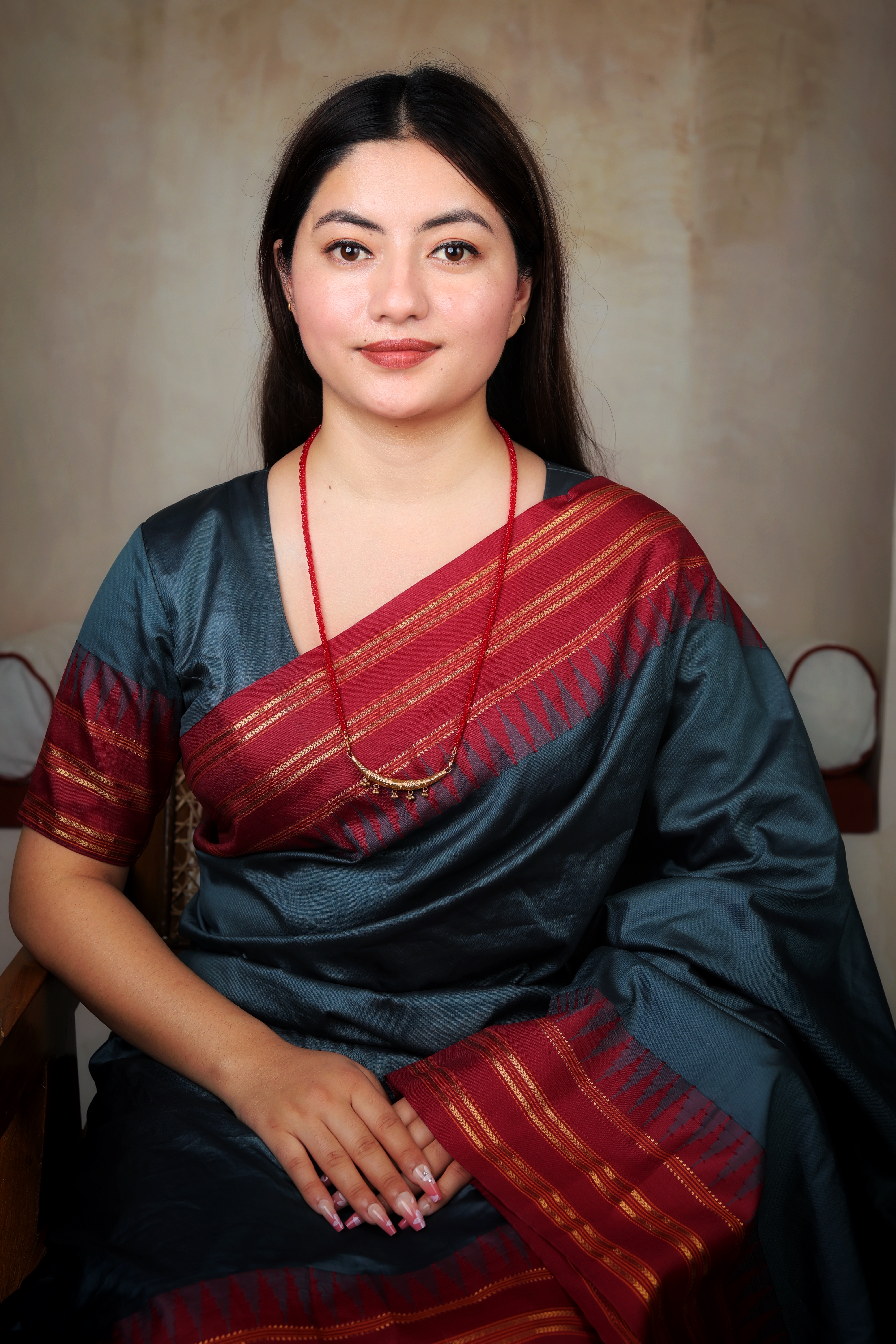 The combination of rich gold detailing and vibrant red beads makes it a perfect symbol of love, tradition, and grace.