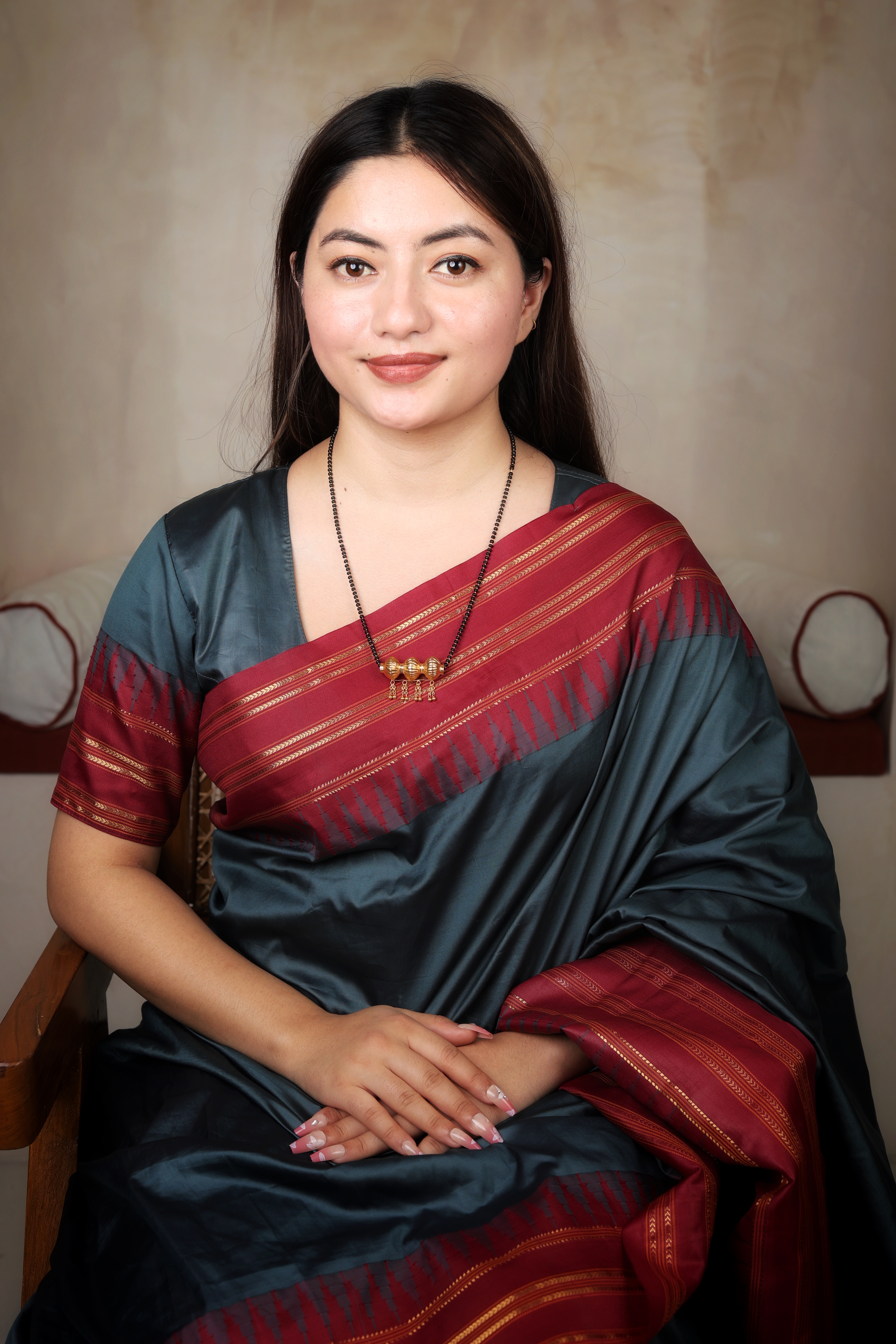 While its function aligns with the Temania (Timaniya) style from the Kumaon and Garhwal regions of Uttarakhand, the specific three-bead pendant draws strong inspiration from the Maharashtrian Dholki or Gadi bead style.