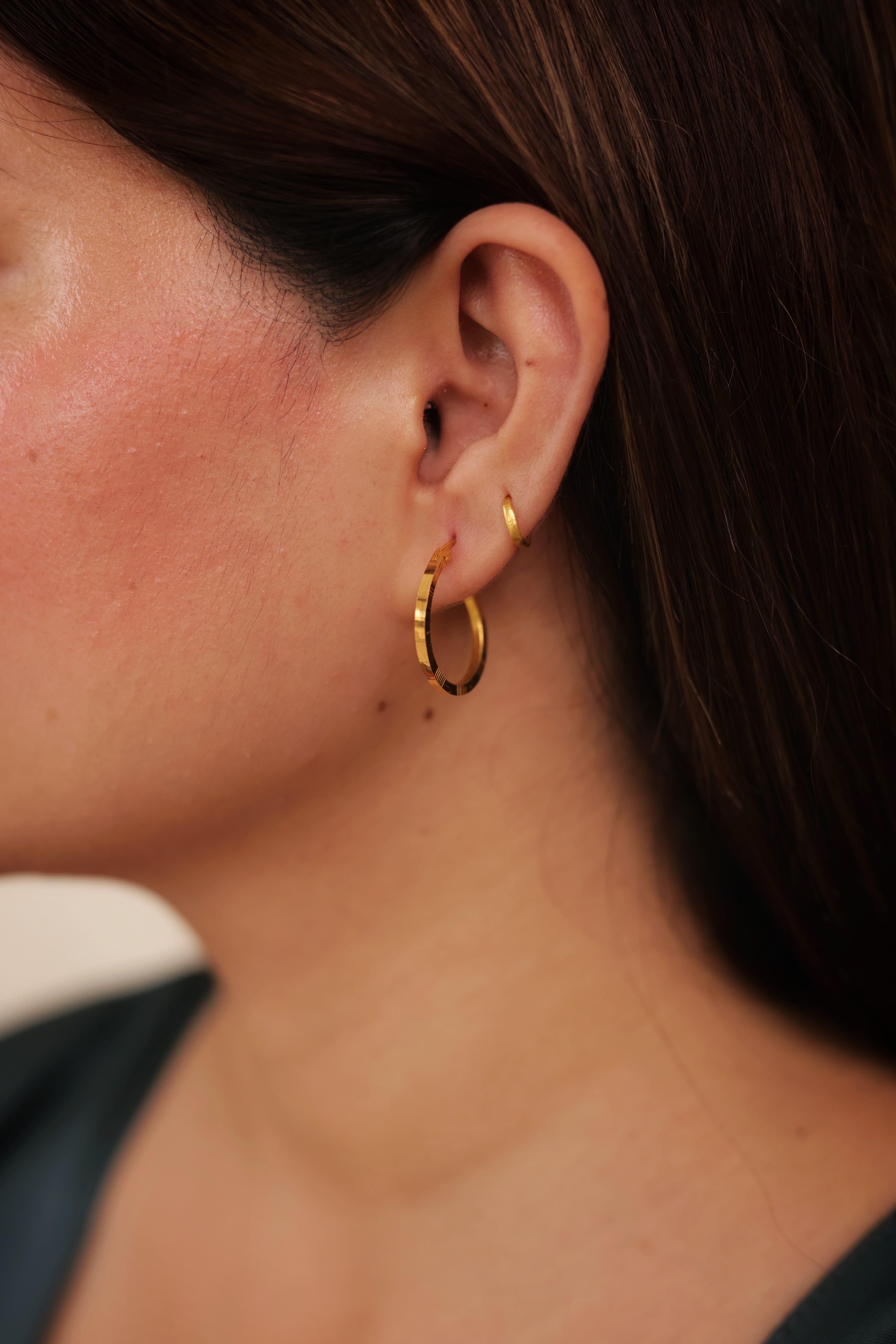 Unique Beaded Texture: The central beaded segment adds a sophisticated, handcrafted look. Hypoallergenic Quality: Nickel-free and Lead-free for sensitive ears. Premium Gold Finish: High-quality 24K Gold plating ensures long-lasting, brilliant shine. Secure Huggie Fit: Features a sturdy and easy-to-manage click-closure for maximum security. Versatile Styling: Perfect for stacking with other earrings or wearing solo for a classic, polished look.